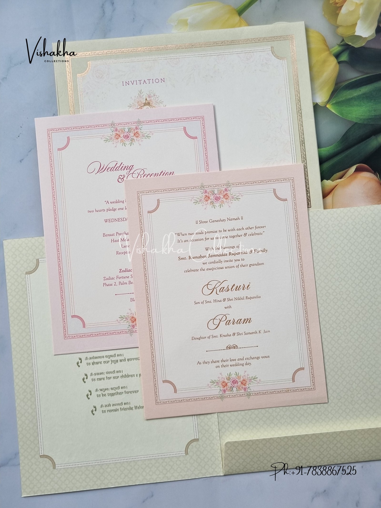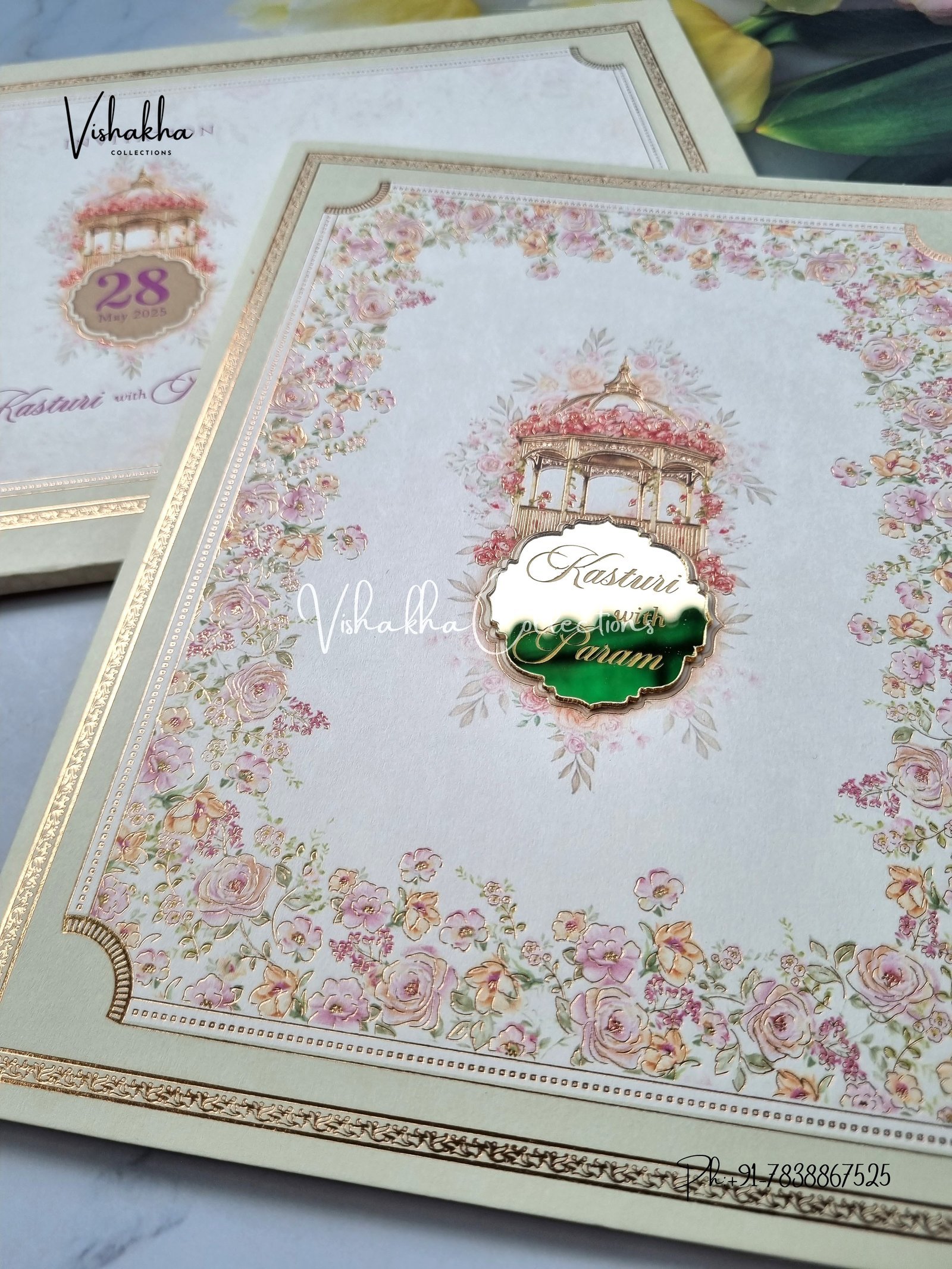 Vishakha Collections presents you beautiful luxury wedding invitation cards with all latest designs and the latest variety. Its just not a wedding invitation card but a beautiful feeling of love and relationship it carries for you. Beautifully printed and packed with a bundle of love. if you like it, dont think again, just go for it.If you are worrying about the quality of the product, send your doubts to us. We are here to help you. If you want in wholesale or bulk, dont forget to contact us.