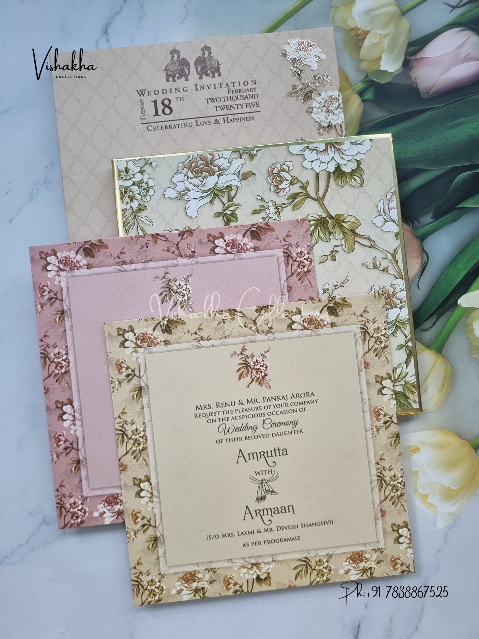 Semi Box Flower Themed Hindu Wedding Muslim Wedding Christian Wedding Sikh Wedding Padded Wedding invitation Cards – CR-M1172