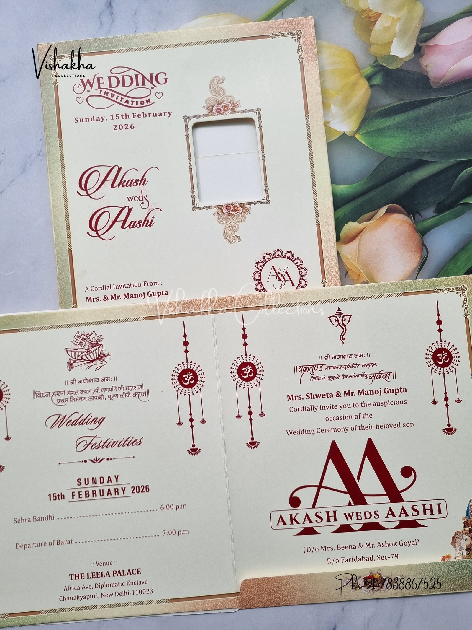 Vishakha Collections presents you beautiful luxury wedding invitation cards with all latest designs and the latest variety. Its just not a wedding invitation card but a beautiful feeling of love and relationship it carries for you. Beautifully printed and packed with a bundle of love. if you like it, dont think again, just go for it.If you are worrying about the quality of the product, send your doubts to us. We are here to help you. If you want in wholesale or bulk, dont forget to contact us.