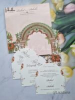Vishakha Collections presents you beautiful luxury wedding invitation cards with all latest designs and the latest variety. Its just not a wedding invitation card but a beautiful feeling of love and relationship it carries for you. Beautifully printed and packed with a bundle of love. if you like it, dont think again, just go for it.If you are worrying about the quality of the product, send your doubts to us. We are here to help you. If you want in wholesale or bulk, dont forget to contact us.