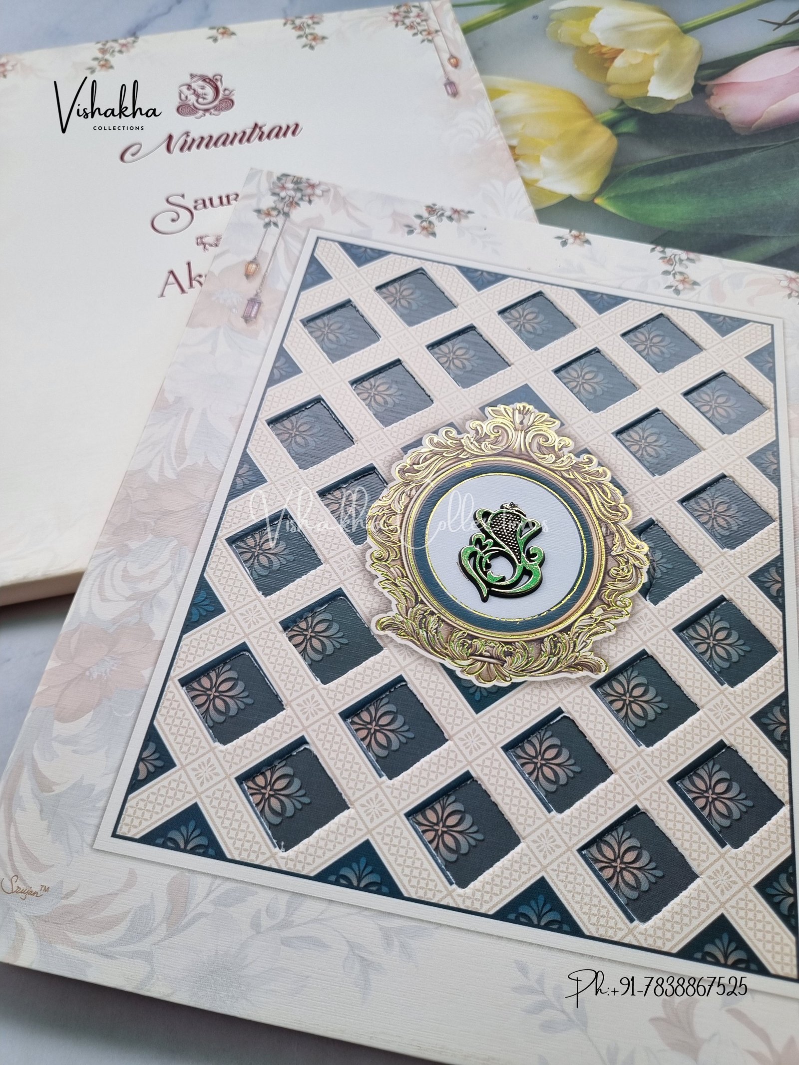 Vishakha Collections presents you beautiful luxury wedding invitation cards with all latest designs and the latest variety. Its just not a wedding invitation card but a beautiful feeling of love and relationship it carries for you. Beautifully printed and packed with a bundle of love. if you like it, dont think again, just go for it.If you are worrying about the quality of the product, send your doubts to us. We are here to help you. If you want in wholesale or bulk, dont forget to contact us.
