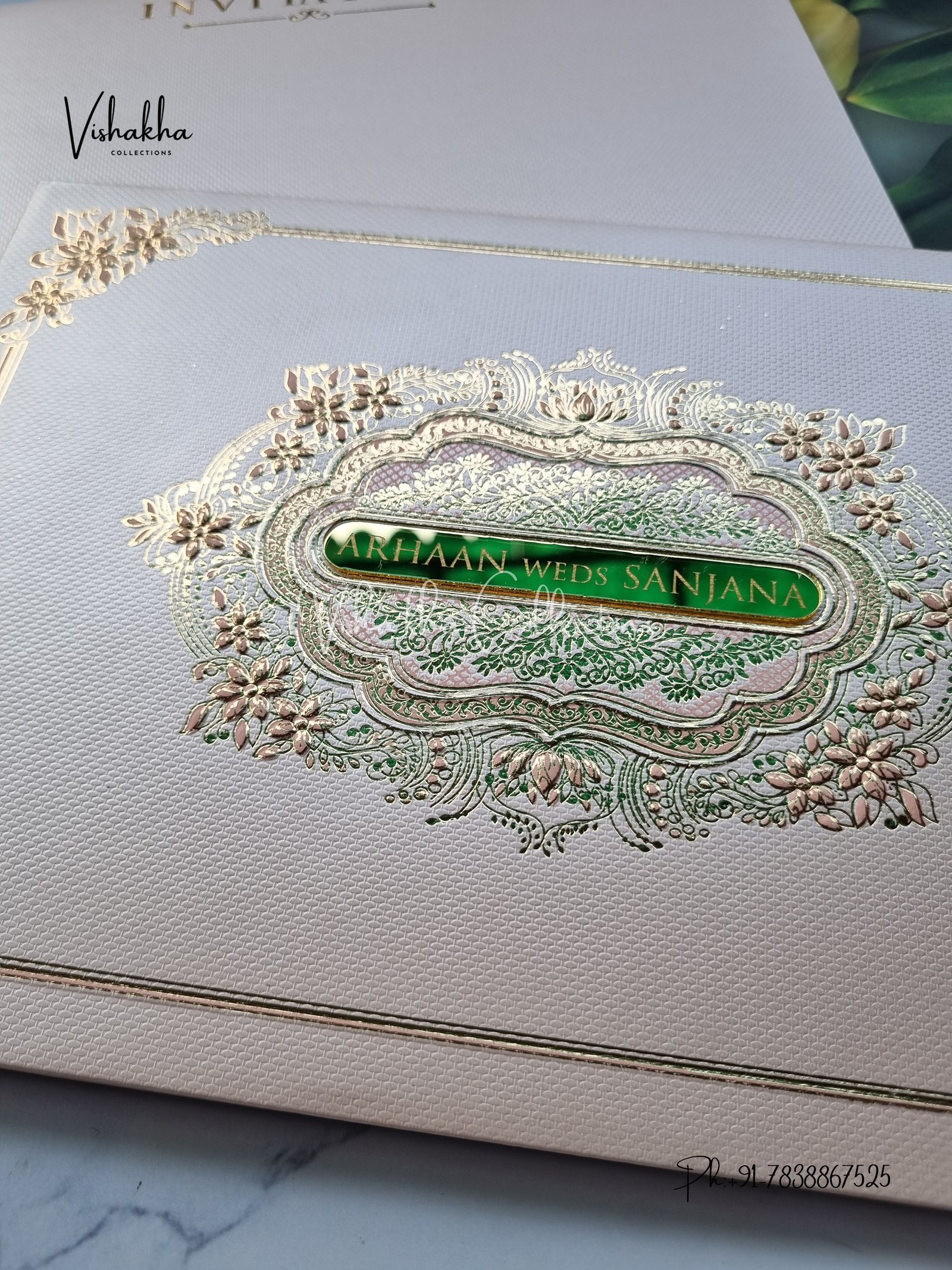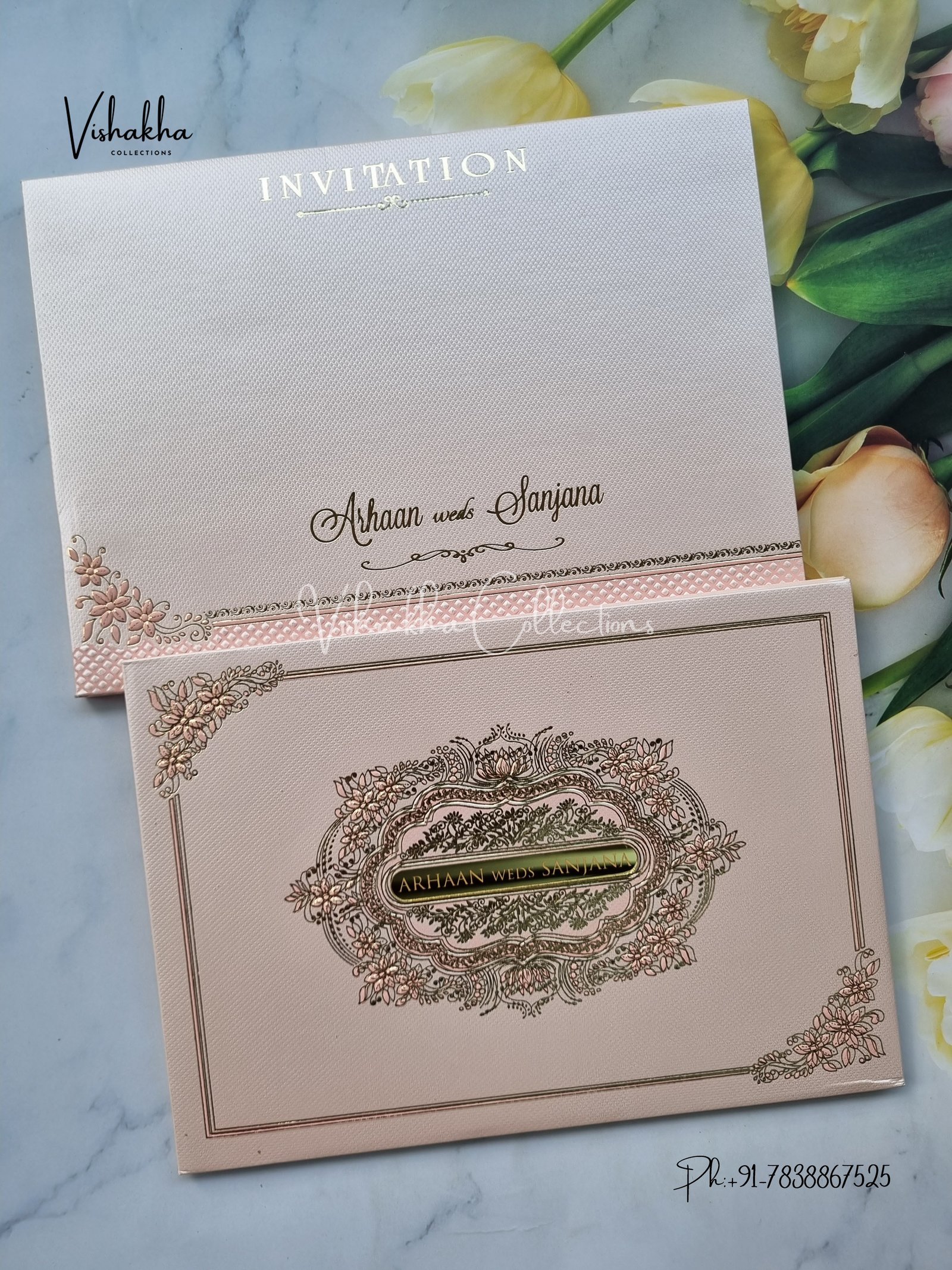 Vishakha Collections presents you beautiful luxury wedding invitation cards with all latest designs and the latest variety. Its just not a wedding invitation card but a beautiful feeling of love and relationship it carries for you. Beautifully printed and packed with a bundle of love. if you like it, dont think again, just go for it.If you are worrying about the quality of the product, send your doubts to us. We are here to help you. If you want in wholesale or bulk, dont forget to contact us.