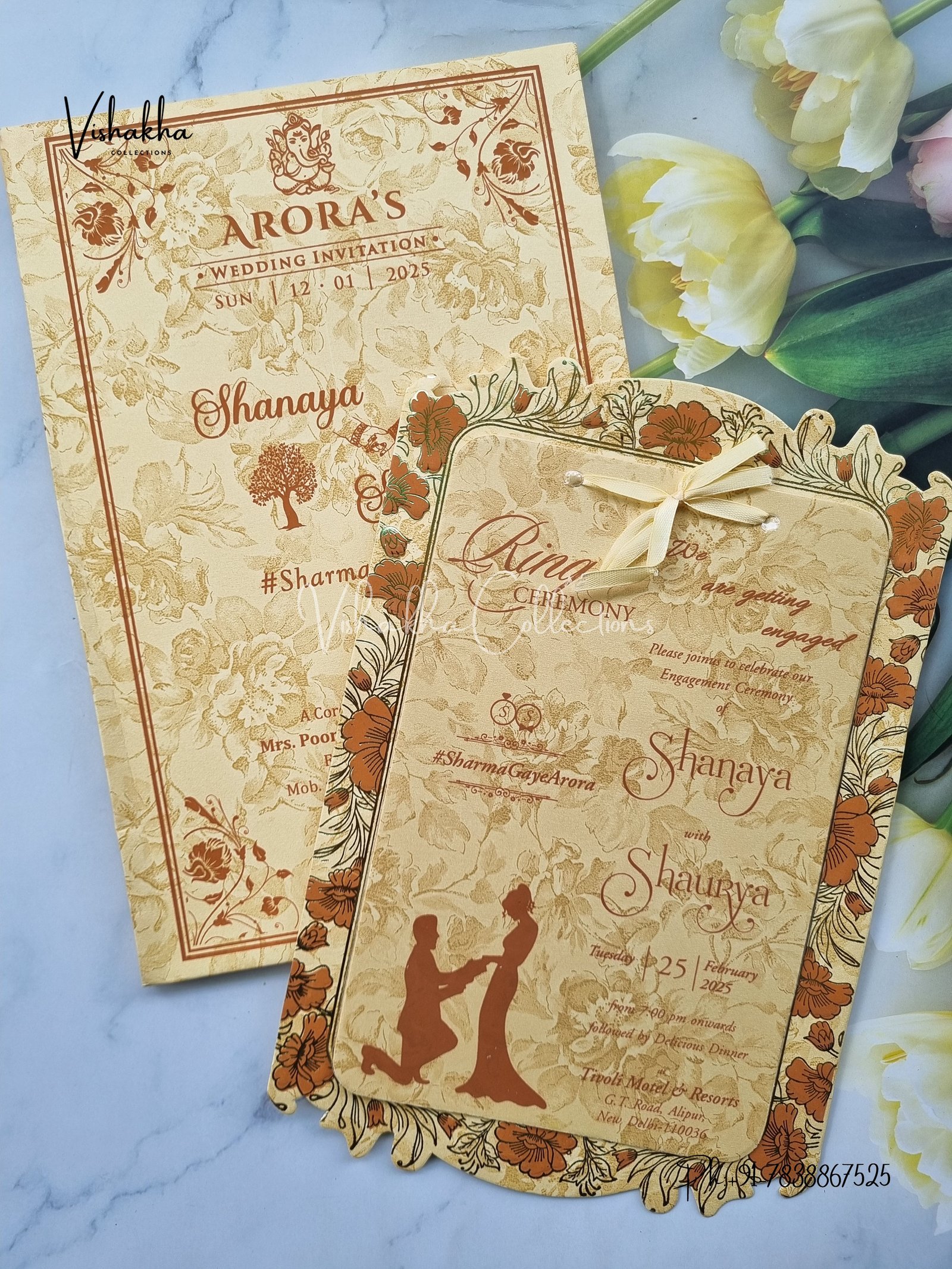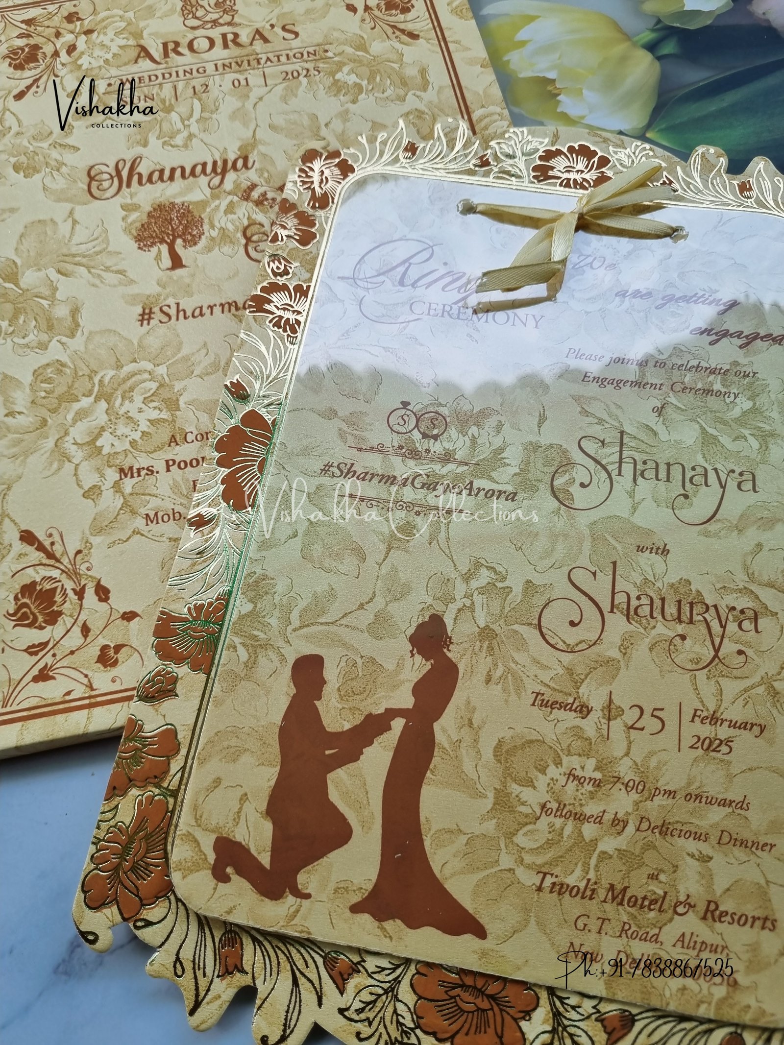 Vishakha Collections presents you beautiful luxury wedding invitation cards with all latest designs and the latest variety. Its just not a wedding invitation card but a beautiful feeling of love and relationship it carries for you. Beautifully printed and packed with a bundle of love. if you like it, dont think again, just go for it.If you are worrying about the quality of the product, send your doubts to us. We are here to help you. If you want in wholesale or bulk, dont forget to contact us.