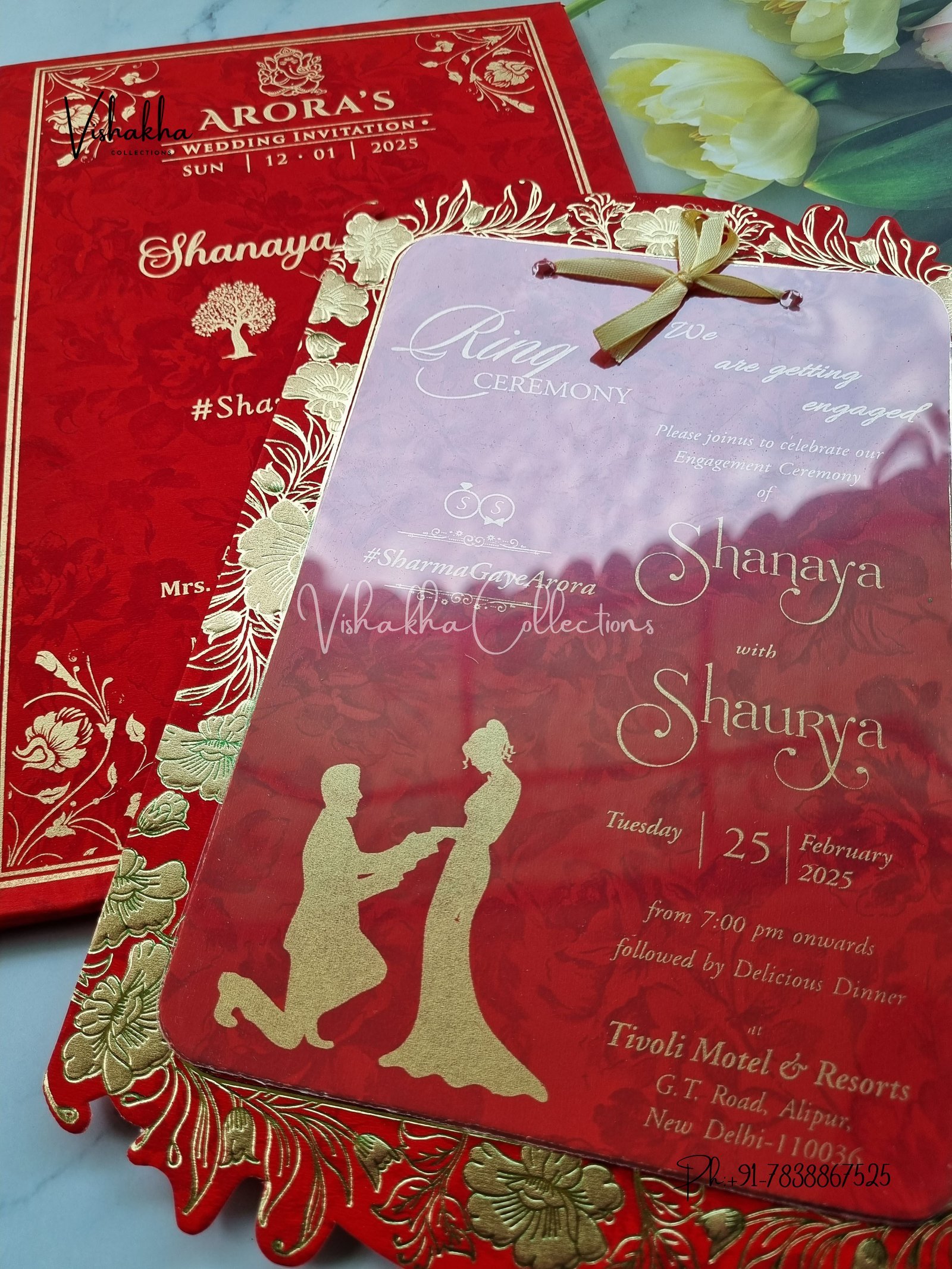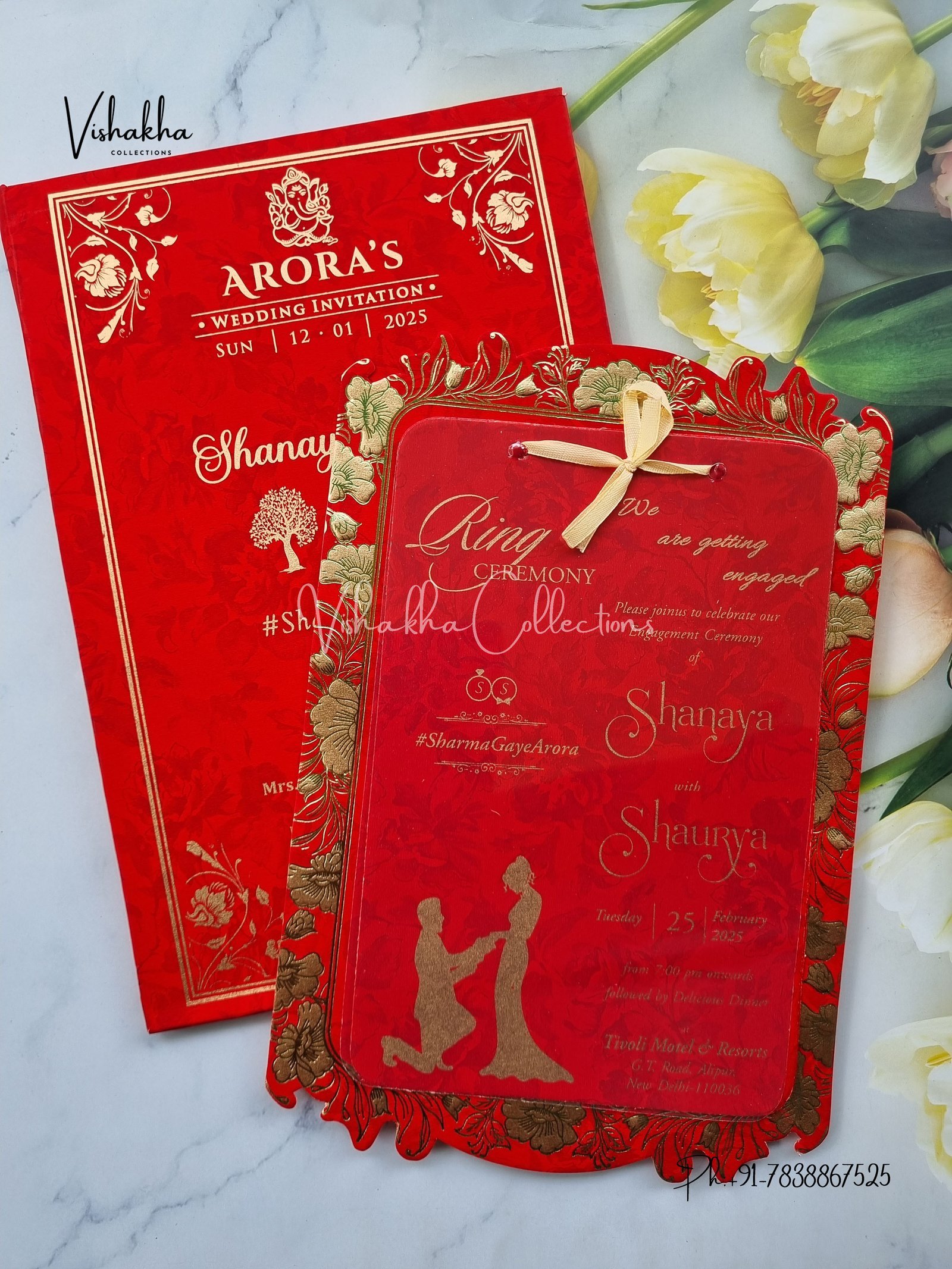 Vishakha Collections presents you beautiful luxury wedding invitation cards with all latest designs and the latest variety. Its just not a wedding invitation card but a beautiful feeling of love and relationship it carries for you. Beautifully printed and packed with a bundle of love. if you like it, dont think again, just go for it.If you are worrying about the quality of the product, send your doubts to us. We are here to help you. If you want in wholesale or bulk, dont forget to contact us.