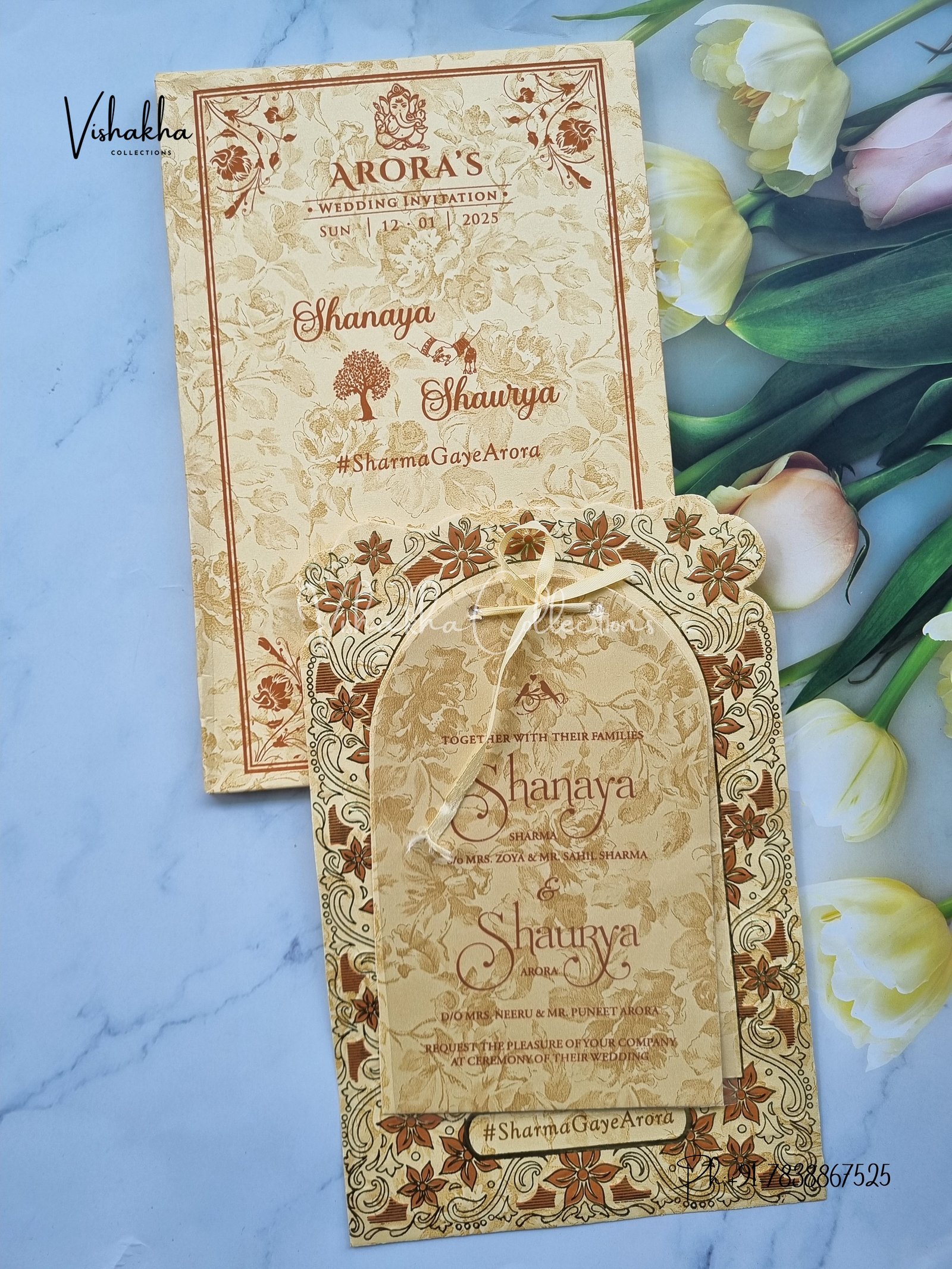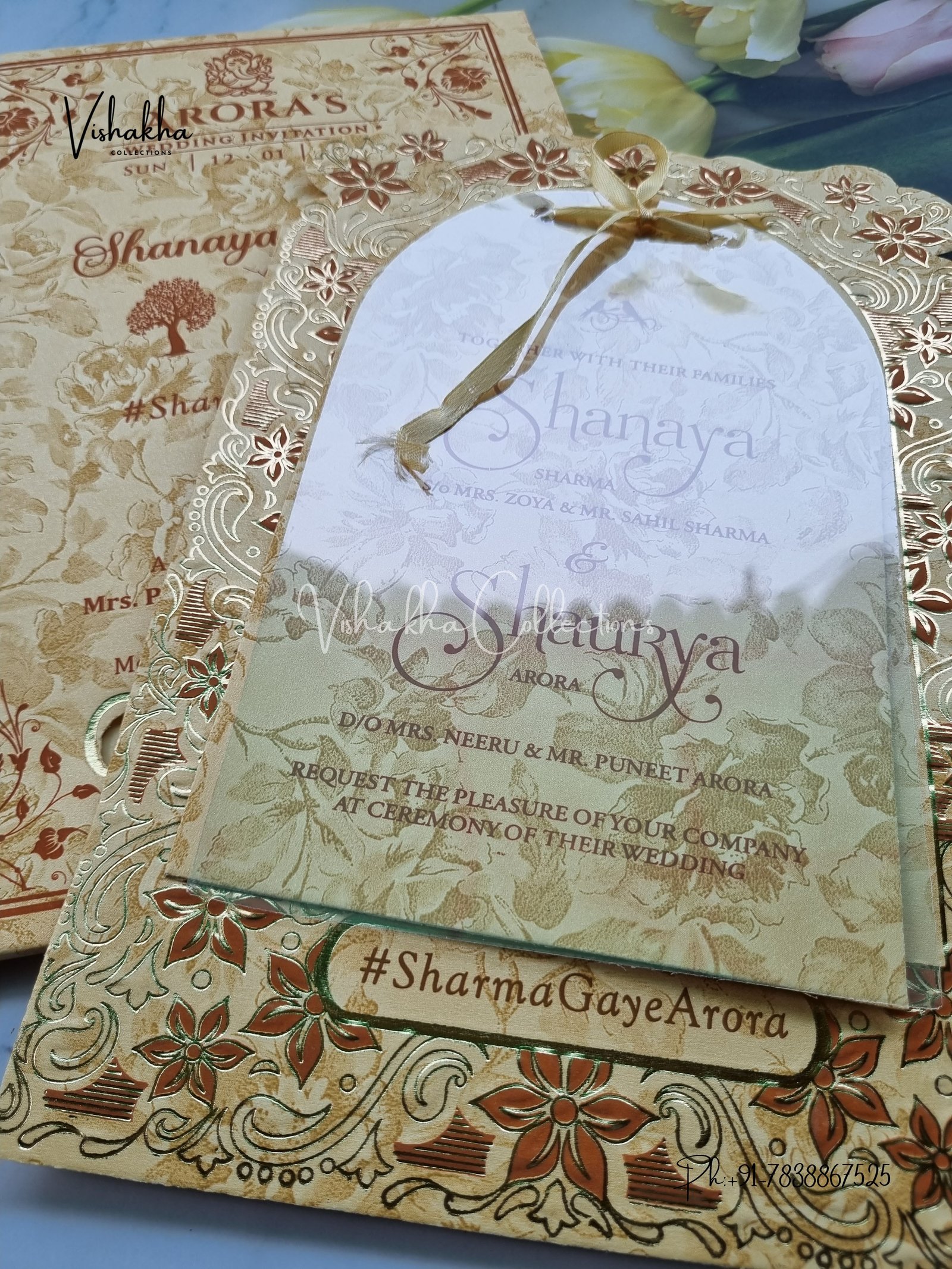 Vishakha Collections presents you beautiful luxury wedding invitation cards with all latest designs and the latest variety. Its just not a wedding invitation card but a beautiful feeling of love and relationship it carries for you. Beautifully printed and packed with a bundle of love. if you like it, dont think again, just go for it.If you are worrying about the quality of the product, send your doubts to us. We are here to help you. If you want in wholesale or bulk, dont forget to contact us.