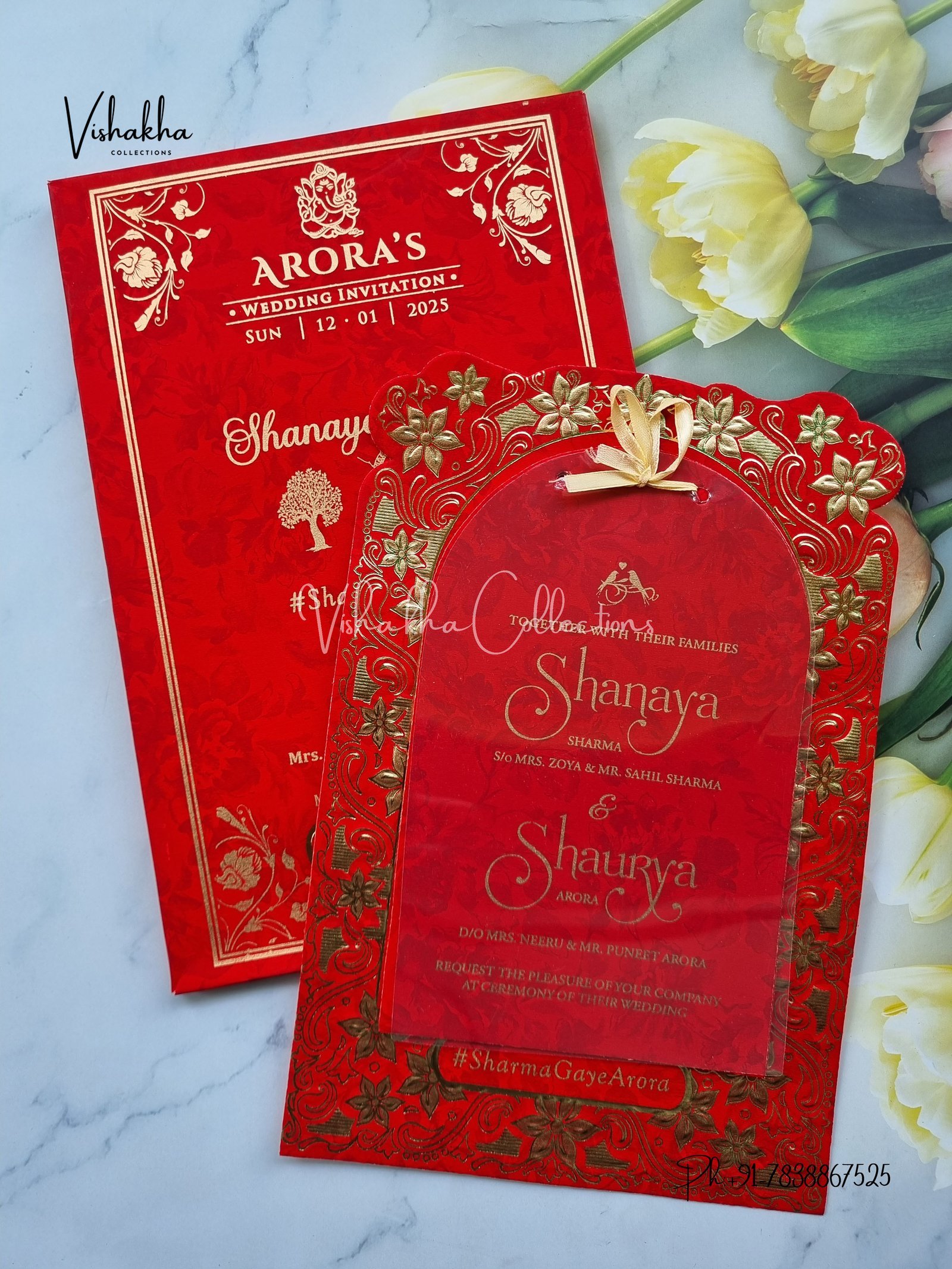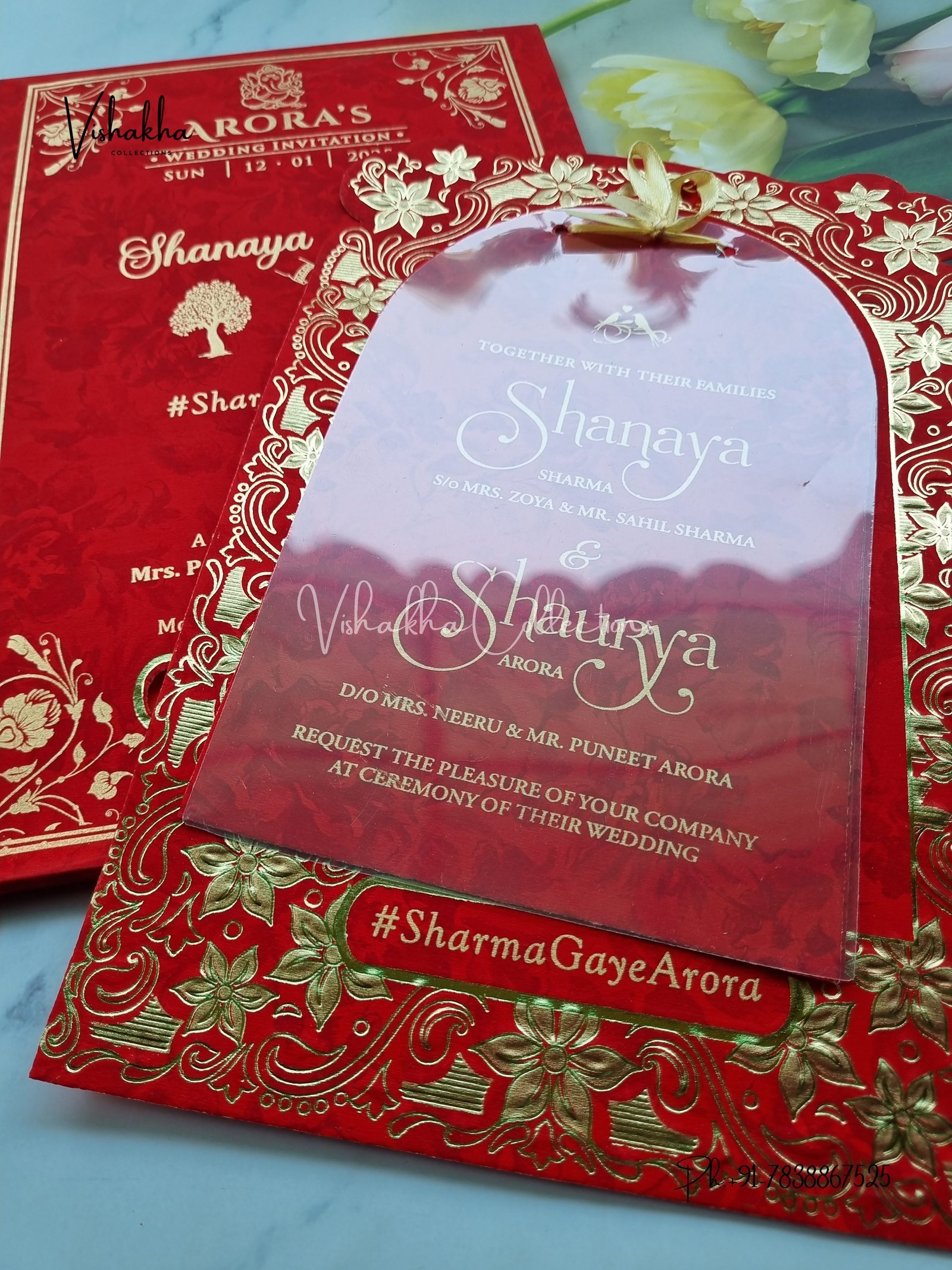 Vishakha Collections presents you beautiful luxury wedding invitation cards with all latest designs and the latest variety. Its just not a wedding invitation card but a beautiful feeling of love and relationship it carries for you. Beautifully printed and packed with a bundle of love. if you like it, dont think again, just go for it.If you are worrying about the quality of the product, send your doubts to us. We are here to help you. If you want in wholesale or bulk, dont forget to contact us.