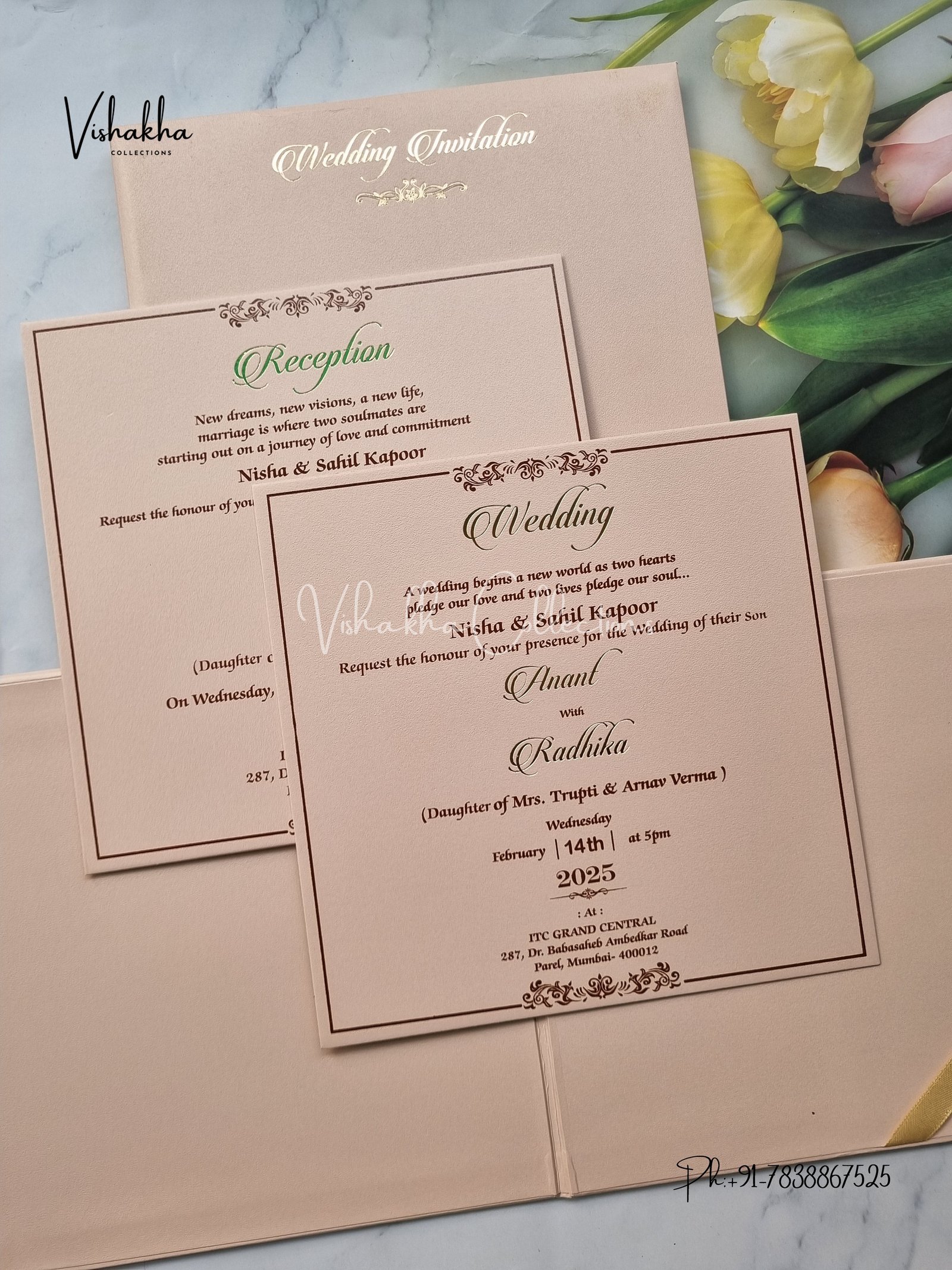 Vishakha Collections presents you beautiful luxury wedding invitation cards with all latest designs and the latest variety. Its just not a wedding invitation card but a beautiful feeling of love and relationship it carries for you. Beautifully printed and packed with a bundle of love. if you like it, dont think again, just go for it.If you are worrying about the quality of the product, send your doubts to us. We are here to help you. If you want in wholesale or bulk, dont forget to contact us.