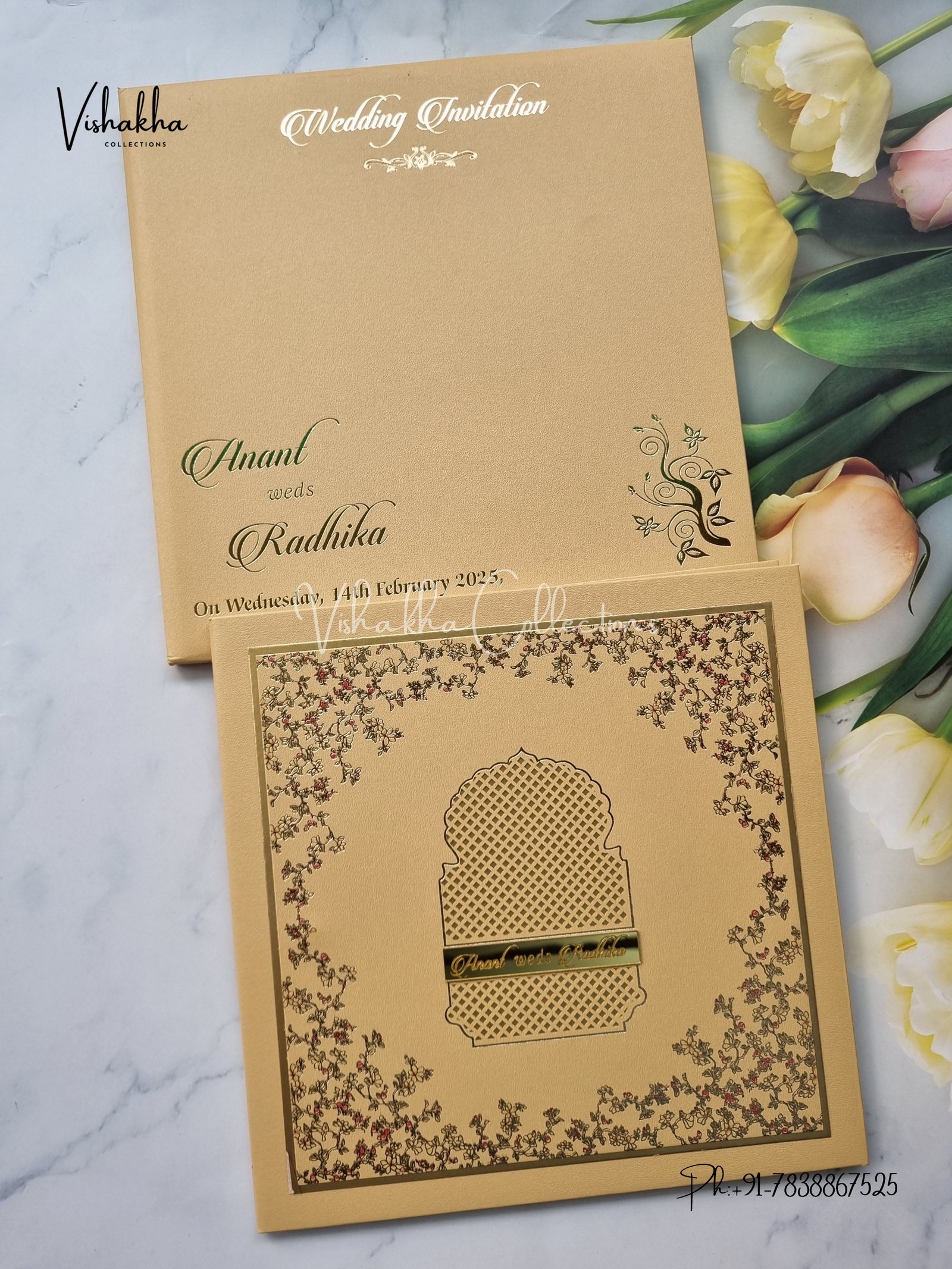Vishakha Collections presents you beautiful luxury wedding invitation cards with all latest designs and the latest variety. Its just not a wedding invitation card but a beautiful feeling of love and relationship it carries for you. Beautifully printed and packed with a bundle of love. if you like it, dont think again, just go for it.If you are worrying about the quality of the product, send your doubts to us. We are here to help you. If you want in wholesale or bulk, dont forget to contact us.