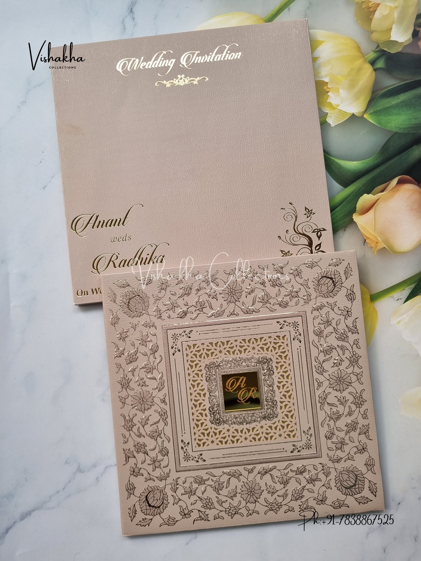 Vishakha Collections presents you beautiful luxury wedding invitation cards with all latest designs and the latest variety. Its just not a wedding invitation card but a beautiful feeling of love and relationship it carries for you. Beautifully printed and packed with a bundle of love. if you like it, dont think again, just go for it.If you are worrying about the quality of the product, send your doubts to us. We are here to help you. If you want in wholesale or bulk, dont forget to contact us.
