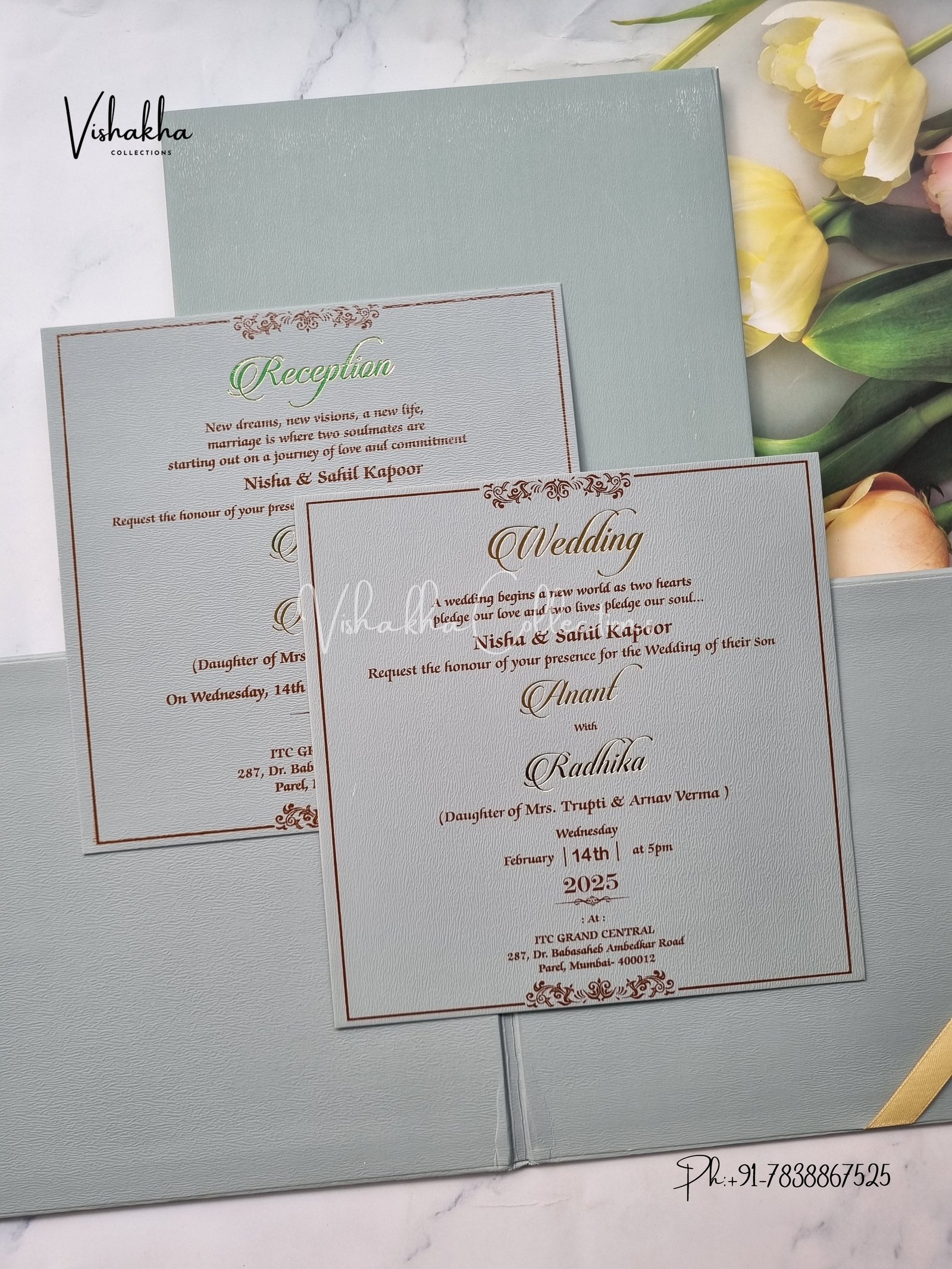 Vishakha Collections presents you beautiful luxury wedding invitation cards with all latest designs and the latest variety. Its just not a wedding invitation card but a beautiful feeling of love and relationship it carries for you. Beautifully printed and packed with a bundle of love. if you like it, dont think again, just go for it.If you are worrying about the quality of the product, send your doubts to us. We are here to help you. If you want in wholesale or bulk, dont forget to contact us.