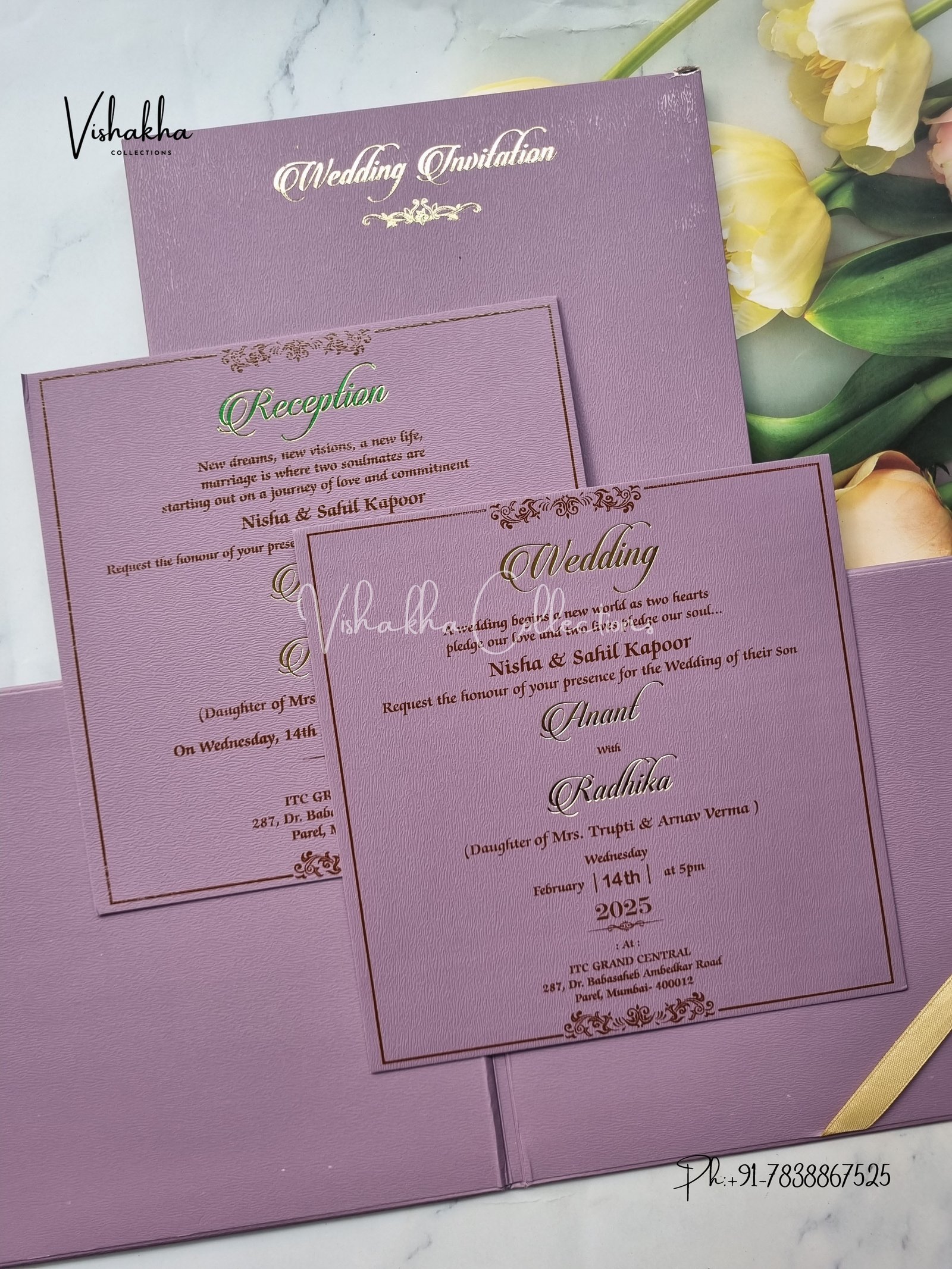 Vishakha Collections presents you beautiful luxury wedding invitation cards with all latest designs and the latest variety. Its just not a wedding invitation card but a beautiful feeling of love and relationship it carries for you. Beautifully printed and packed with a bundle of love. if you like it, dont think again, just go for it.If you are worrying about the quality of the product, send your doubts to us. We are here to help you. If you want in wholesale or bulk, dont forget to contact us.