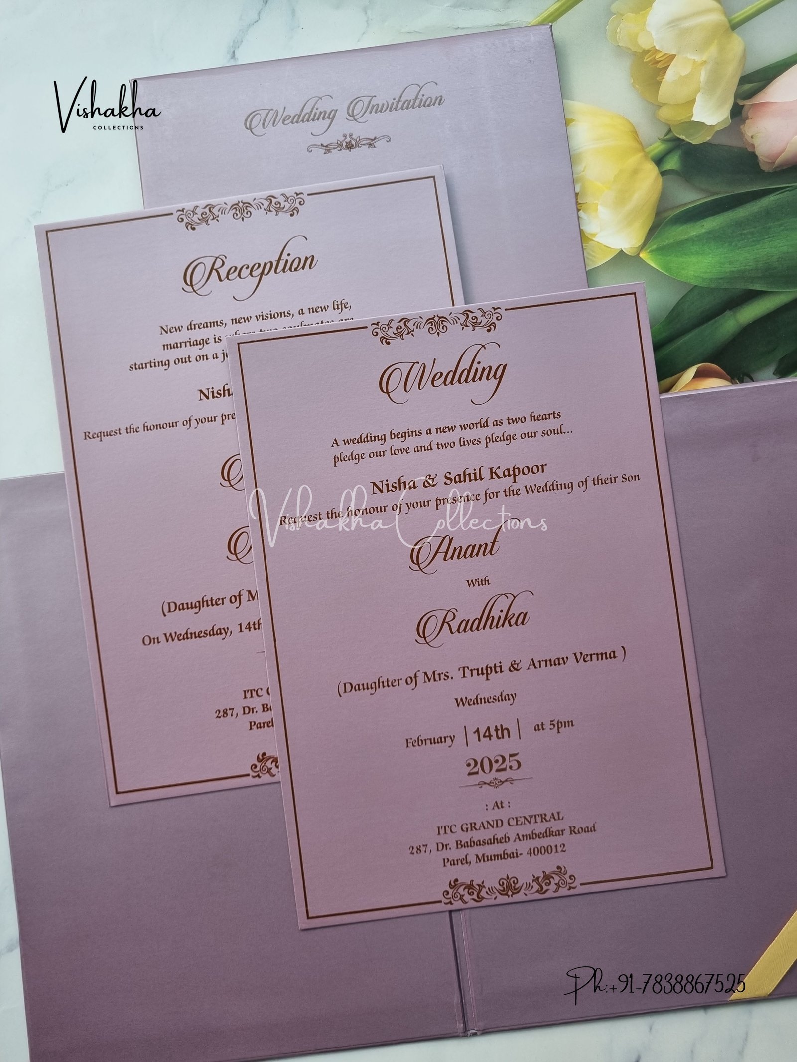 Vishakha Collections presents you beautiful luxury wedding invitation cards with all latest designs and the latest variety. Its just not a wedding invitation card but a beautiful feeling of love and relationship it carries for you. Beautifully printed and packed with a bundle of love. if you like it, dont think again, just go for it.If you are worrying about the quality of the product, send your doubts to us. We are here to help you. If you want in wholesale or bulk, dont forget to contact us.