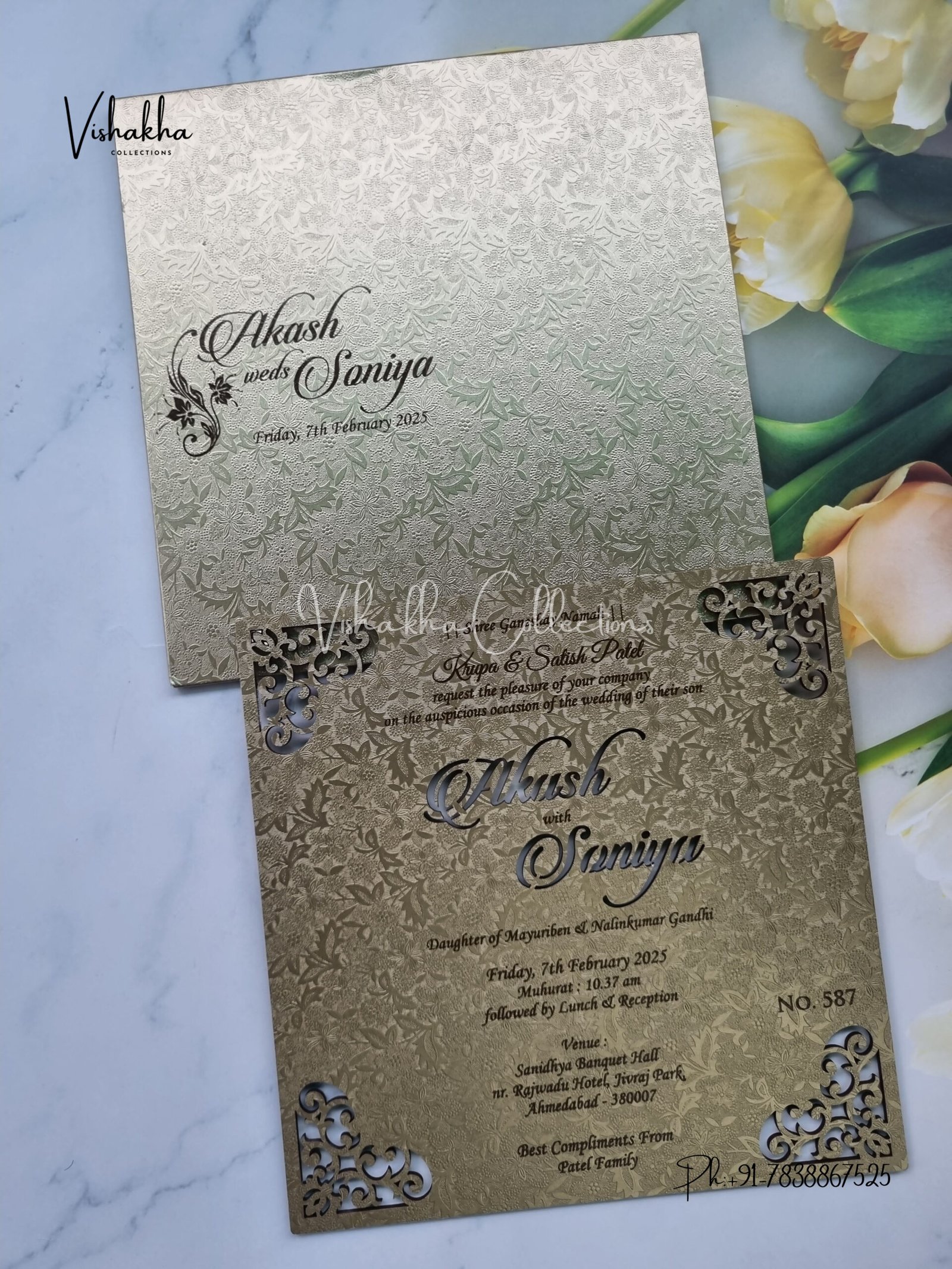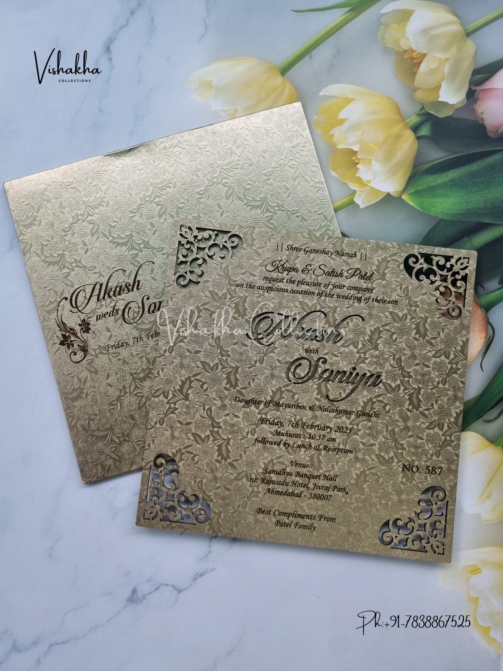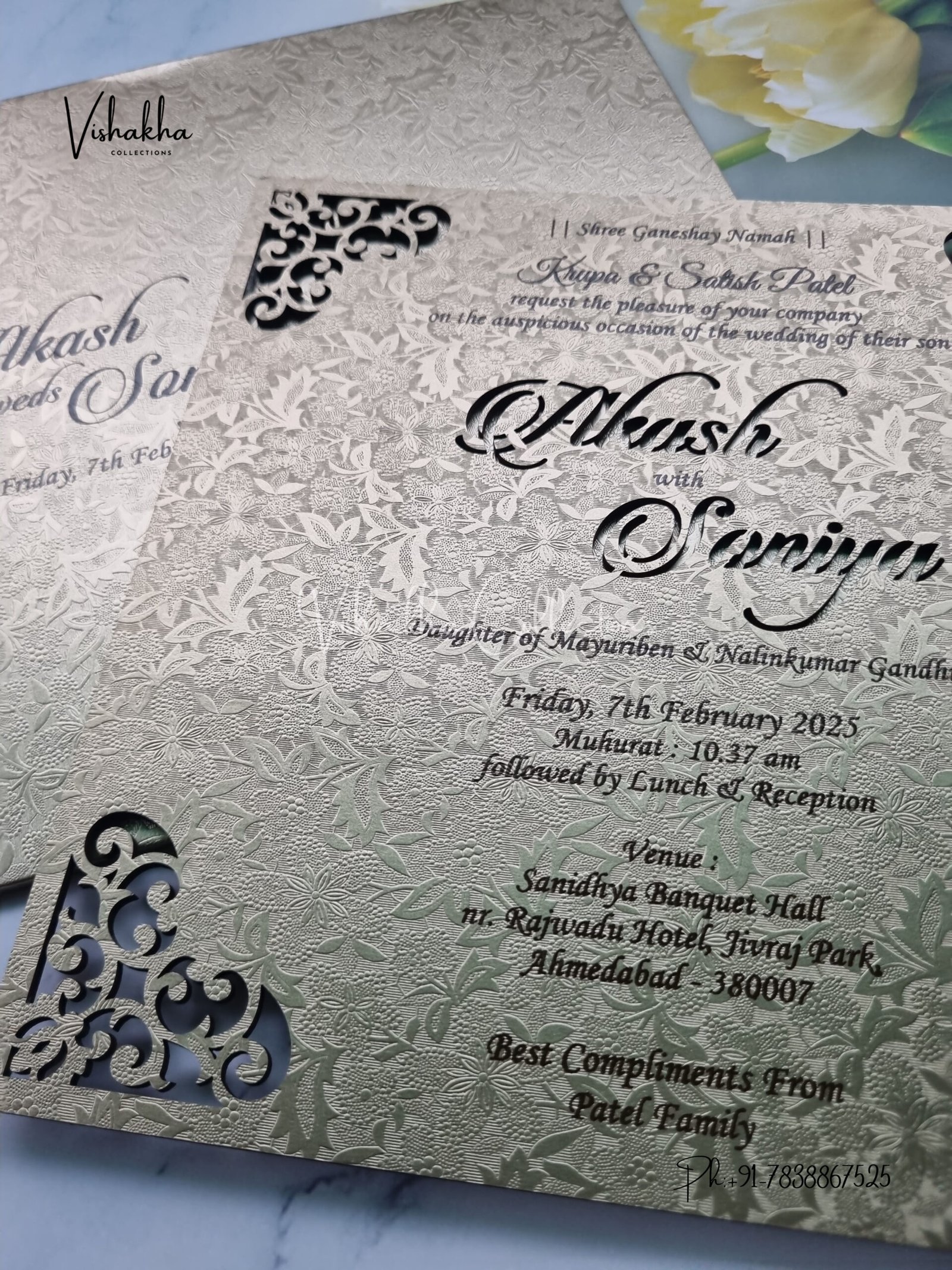 Vishakha Collections presents you beautiful luxury wedding invitation cards with all latest designs and the latest variety. Its just not a wedding invitation card but a beautiful feeling of love and relationship it carries for you. Beautifully printed and packed with a bundle of love. if you like it, dont think again, just go for it.If you are worrying about the quality of the product, send your doubts to us. We are here to help you. If you want in wholesale or bulk, dont forget to contact us.