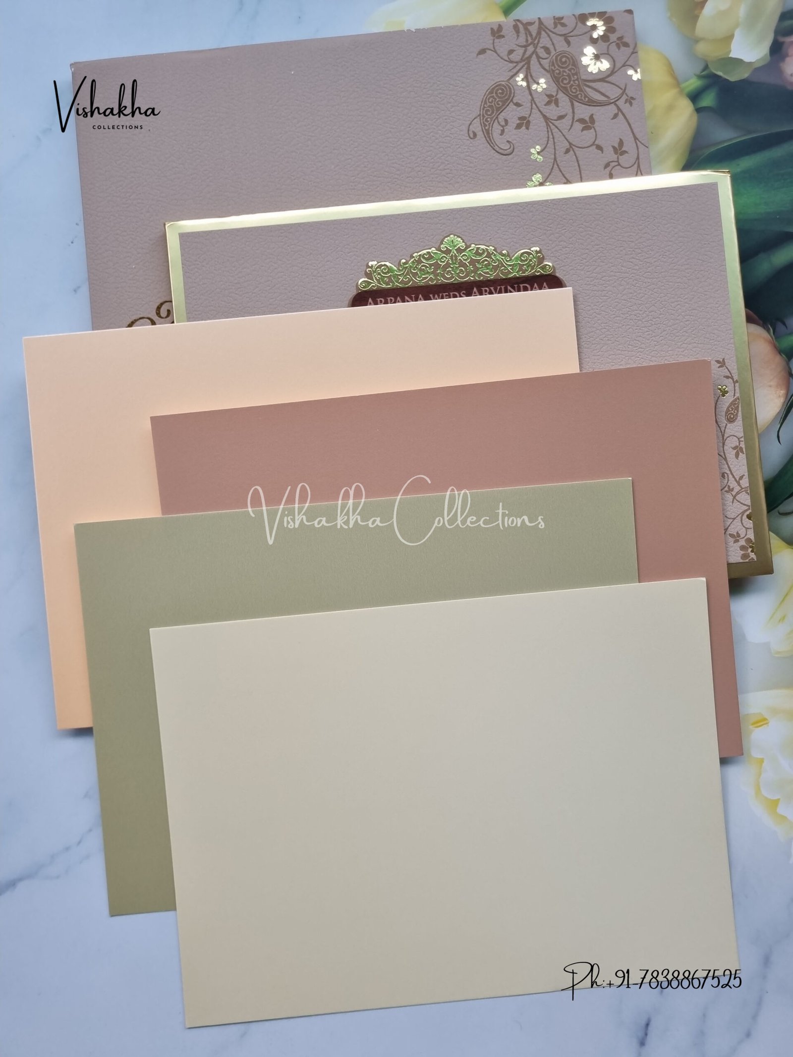 Vishakha Collections presents you beautiful luxury wedding invitation cards with all latest designs and the latest variety. Its just not a wedding invitation card but a beautiful feeling of love and relationship it carries for you. Beautifully printed and packed with a bundle of love. if you like it, dont think again, just go for it.If you are worrying about the quality of the product, send your doubts to us. We are here to help you. If you want in wholesale or bulk, dont forget to contact us.