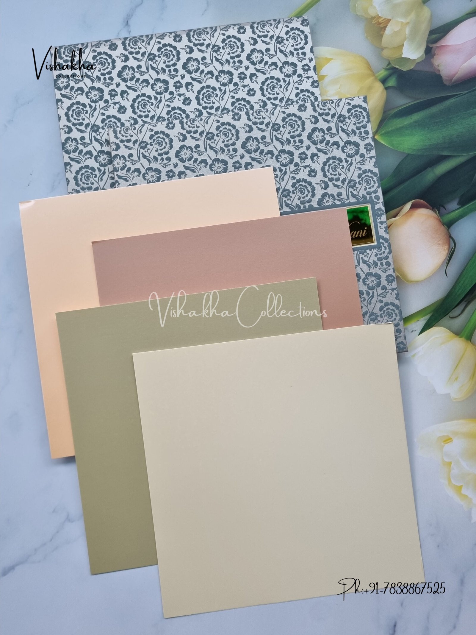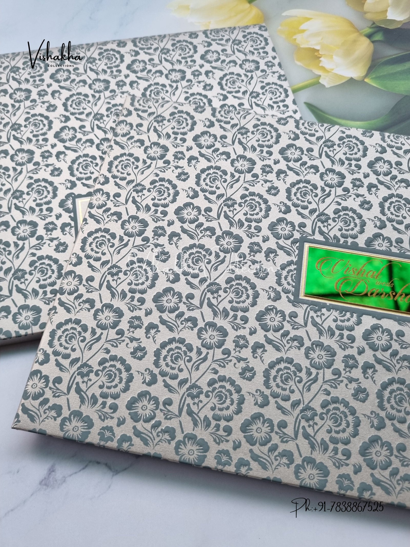 Vishakha Collections presents you beautiful luxury wedding invitation cards with all latest designs and the latest variety. Its just not a wedding invitation card but a beautiful feeling of love and relationship it carries for you. Beautifully printed and packed with a bundle of love. if you like it, dont think again, just go for it.If you are worrying about the quality of the product, send your doubts to us. We are here to help you. If you want in wholesale or bulk, dont forget to contact us.