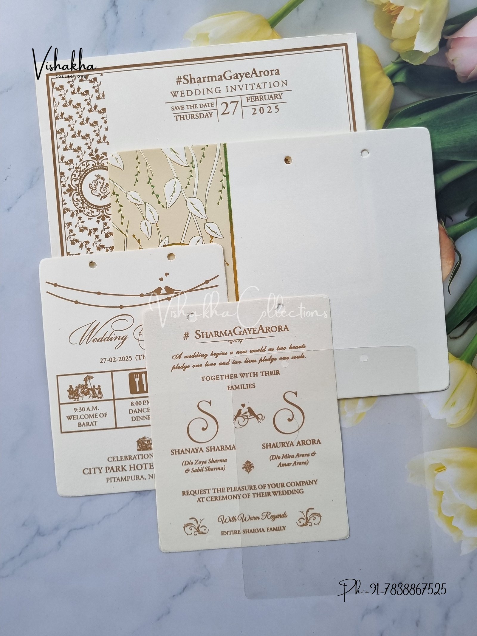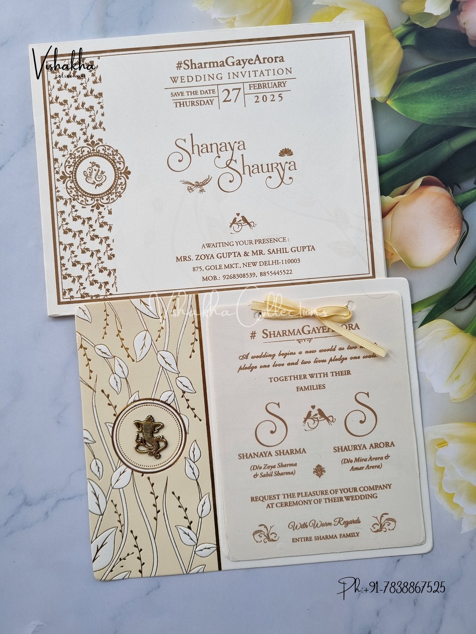 Vishakha Collections presents you beautiful luxury wedding invitation cards with all latest designs and the latest variety. Its just not a wedding invitation card but a beautiful feeling of love and relationship it carries for you. Beautifully printed and packed with a bundle of love. if you like it, dont think again, just go for it.If you are worrying about the quality of the product, send your doubts to us. We are here to help you. If you want in wholesale or bulk, dont forget to contact us.
