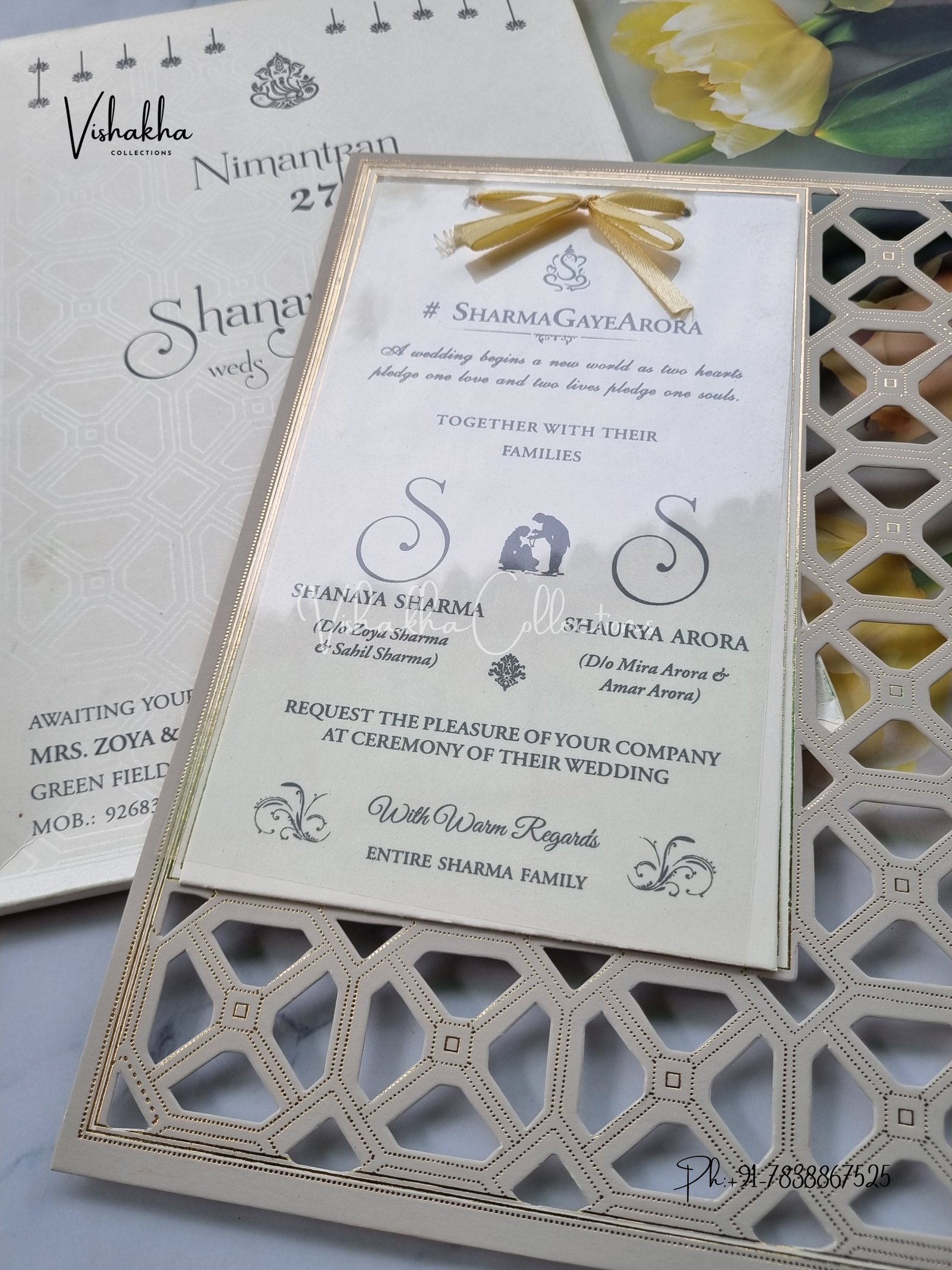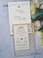 Vishakha Collections presents you beautiful luxury wedding invitation cards with all latest designs and the latest variety. Its just not a wedding invitation card but a beautiful feeling of love and relationship it carries for you. Beautifully printed and packed with a bundle of love. if you like it, dont think again, just go for it.If you are worrying about the quality of the product, send your doubts to us. We are here to help you. If you want in wholesale or bulk, dont forget to contact us.