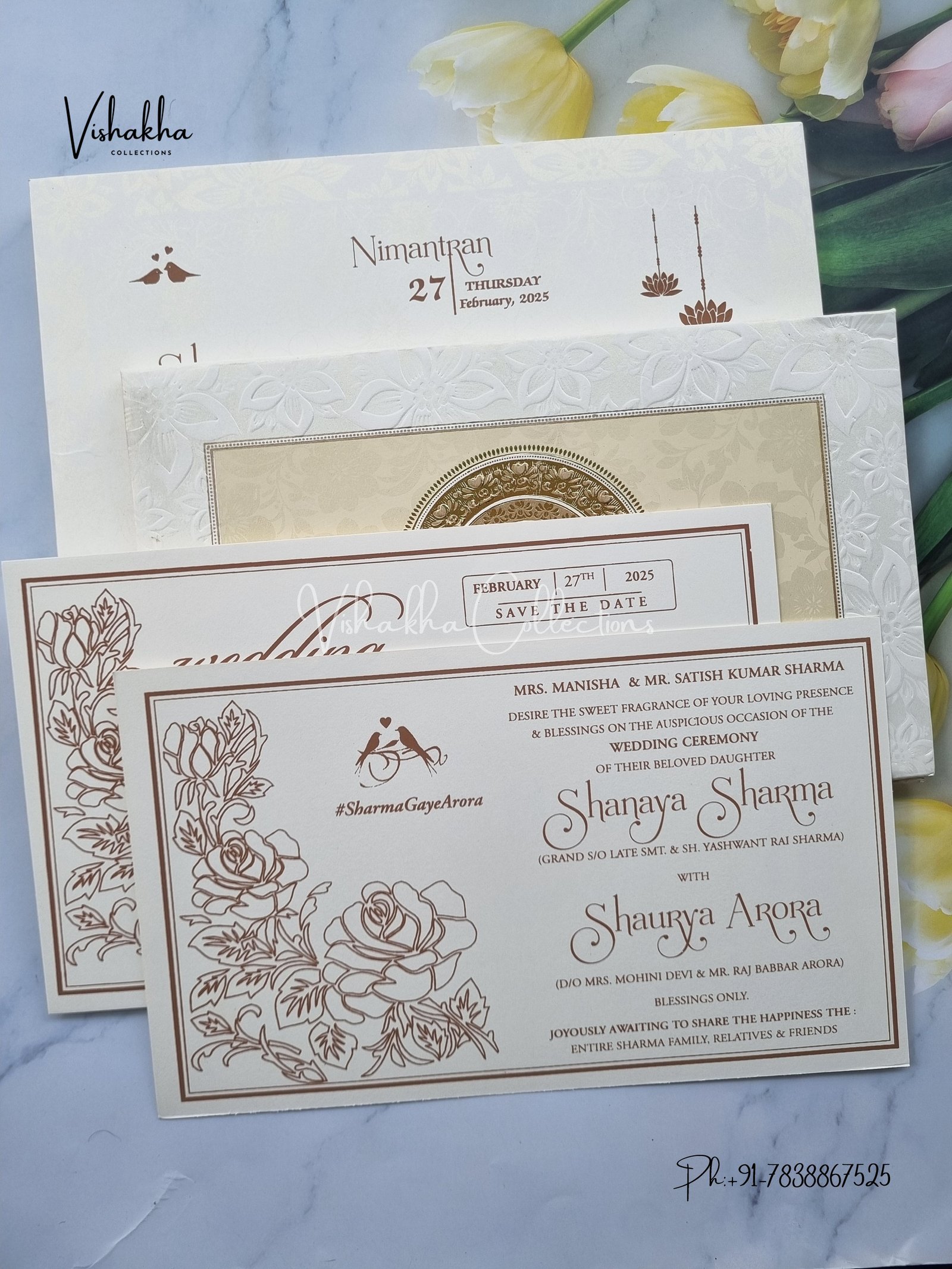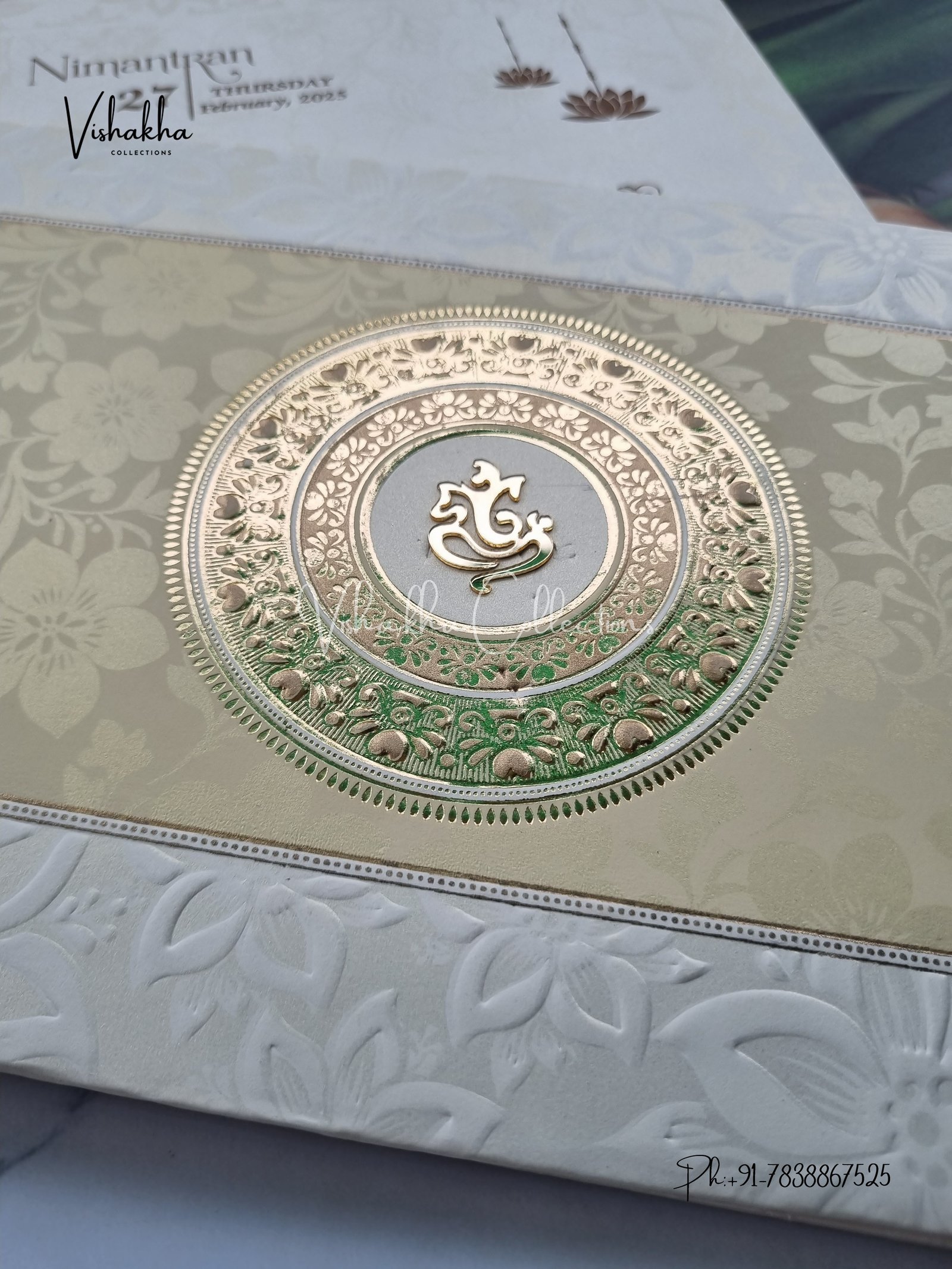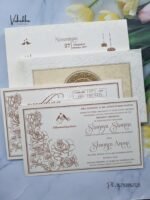 Vishakha Collections presents you beautiful luxury wedding invitation cards with all latest designs and the latest variety. Its just not a wedding invitation card but a beautiful feeling of love and relationship it carries for you. Beautifully printed and packed with a bundle of love. if you like it, dont think again, just go for it.If you are worrying about the quality of the product, send your doubts to us. We are here to help you. If you want in wholesale or bulk, dont forget to contact us.