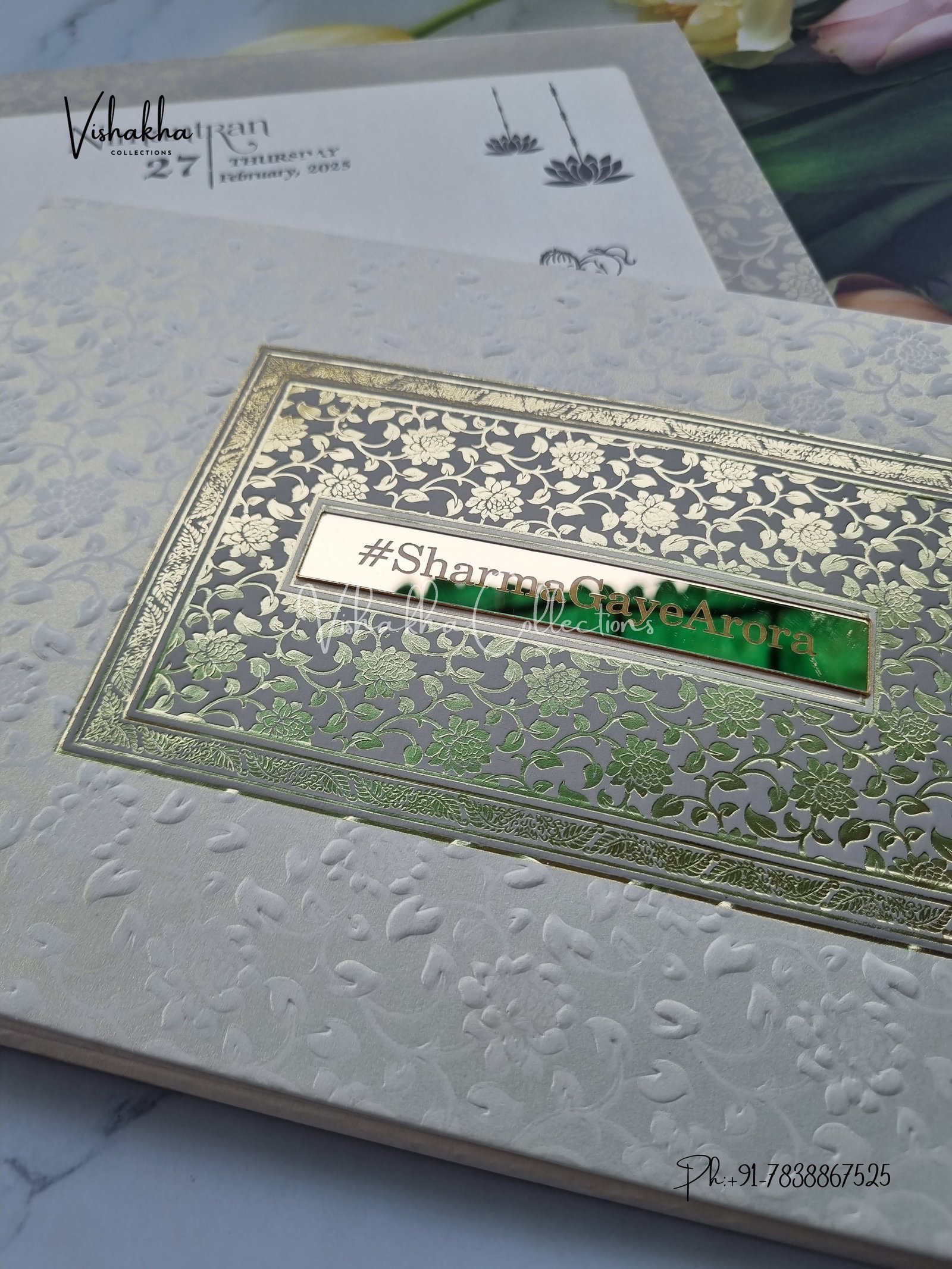 Vishakha Collections presents you beautiful luxury wedding invitation cards with all latest designs and the latest variety. Its just not a wedding invitation card but a beautiful feeling of love and relationship it carries for you. Beautifully printed and packed with a bundle of love. if you like it, dont think again, just go for it.If you are worrying about the quality of the product, send your doubts to us. We are here to help you. If you want in wholesale or bulk, dont forget to contact us.