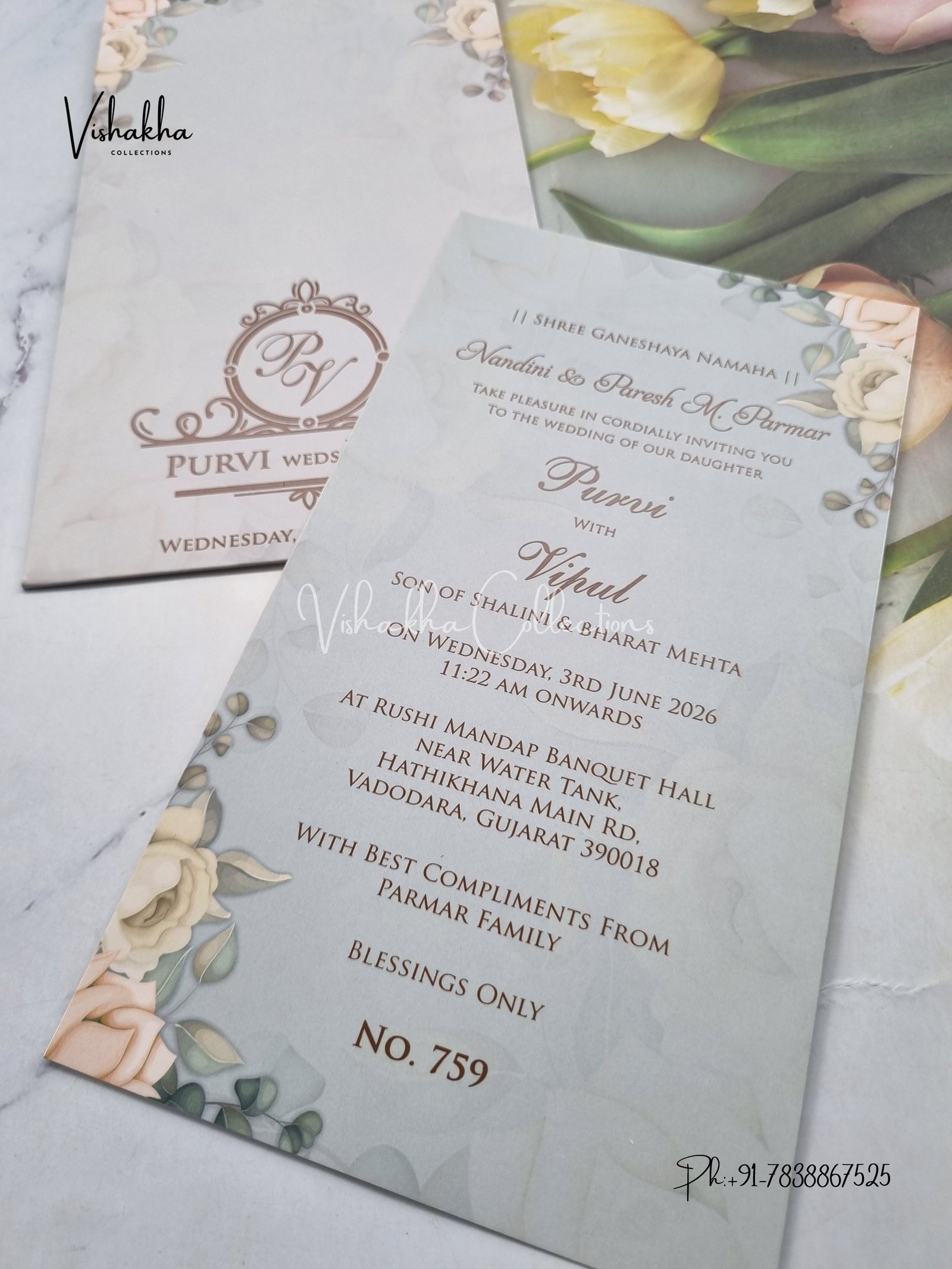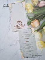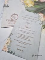 Vishakha Collections presents you beautiful luxury wedding invitation cards with all latest designs and the latest variety. Its just not a wedding invitation card but a beautiful feeling of love and relationship it carries for you. Beautifully printed and packed with a bundle of love. if you like it, dont think again, just go for it.If you are worrying about the quality of the product, send your doubts to us. We are here to help you. If you want in wholesale or bulk, dont forget to contact us.