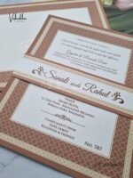 Vishakha Collections presents you beautiful luxury wedding invitation cards with all latest designs and the latest variety. Its just not a wedding invitation card but a beautiful feeling of love and relationship it carries for you. Beautifully printed and packed with a bundle of love. if you like it, dont think again, just go for it.If you are worrying about the quality of the product, send your doubts to us. We are here to help you. If you want in wholesale or bulk, dont forget to contact us.