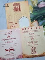 Vishakha Collections presents you beautiful luxury wedding invitation cards with all latest designs and the latest variety. Its just not a wedding invitation card but a beautiful feeling of love and relationship it carries for you. Beautifully printed and packed with a bundle of love. if you like it, dont think again, just go for it.If you are worrying about the quality of the product, send your doubts to us. We are here to help you. If you want in wholesale or bulk, dont forget to contact us.
