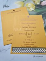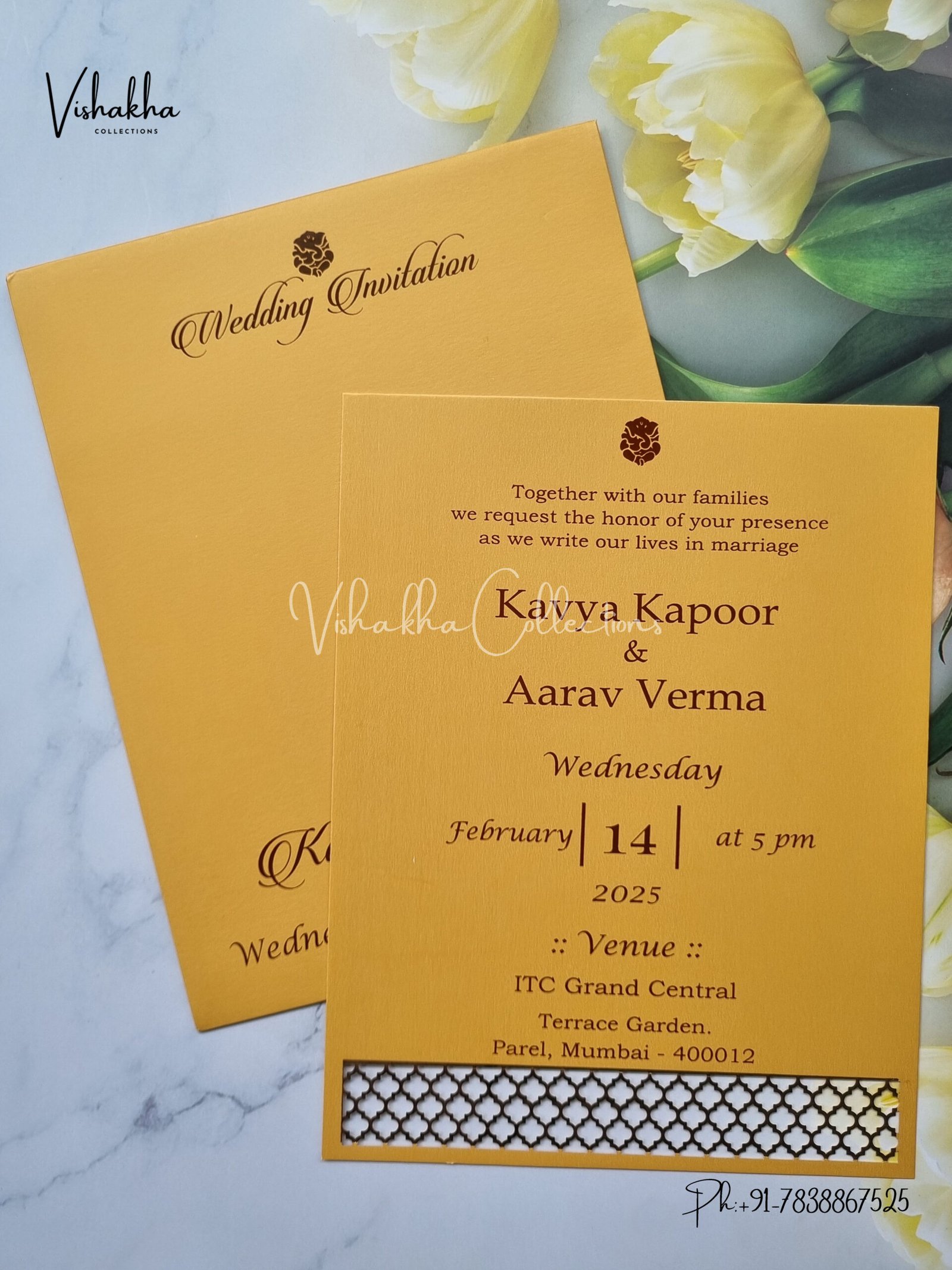 Vishakha Collections presents you beautiful luxury wedding invitation cards with all latest designs and the latest variety. Its just not a wedding invitation card but a beautiful feeling of love and relationship it carries for you. Beautifully printed and packed with a bundle of love. if you like it, dont think again, just go for it.If you are worrying about the quality of the product, send your doubts to us. We are here to help you. If you want in wholesale or bulk, dont forget to contact us.