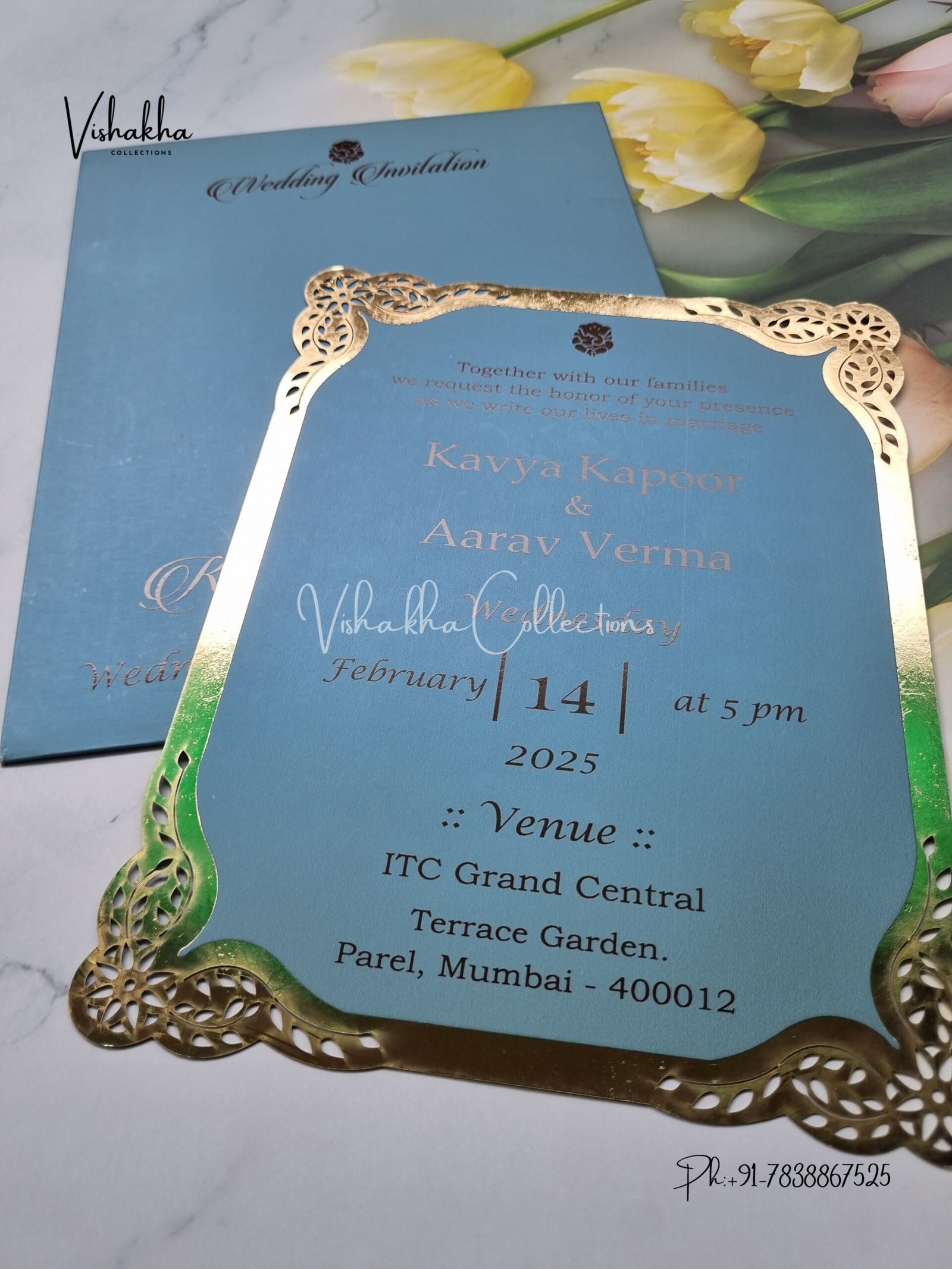 ₹36.00Turquoise Blue Single Insert Laser Cut with Gold Border Hindu Muslim Sikh Christian