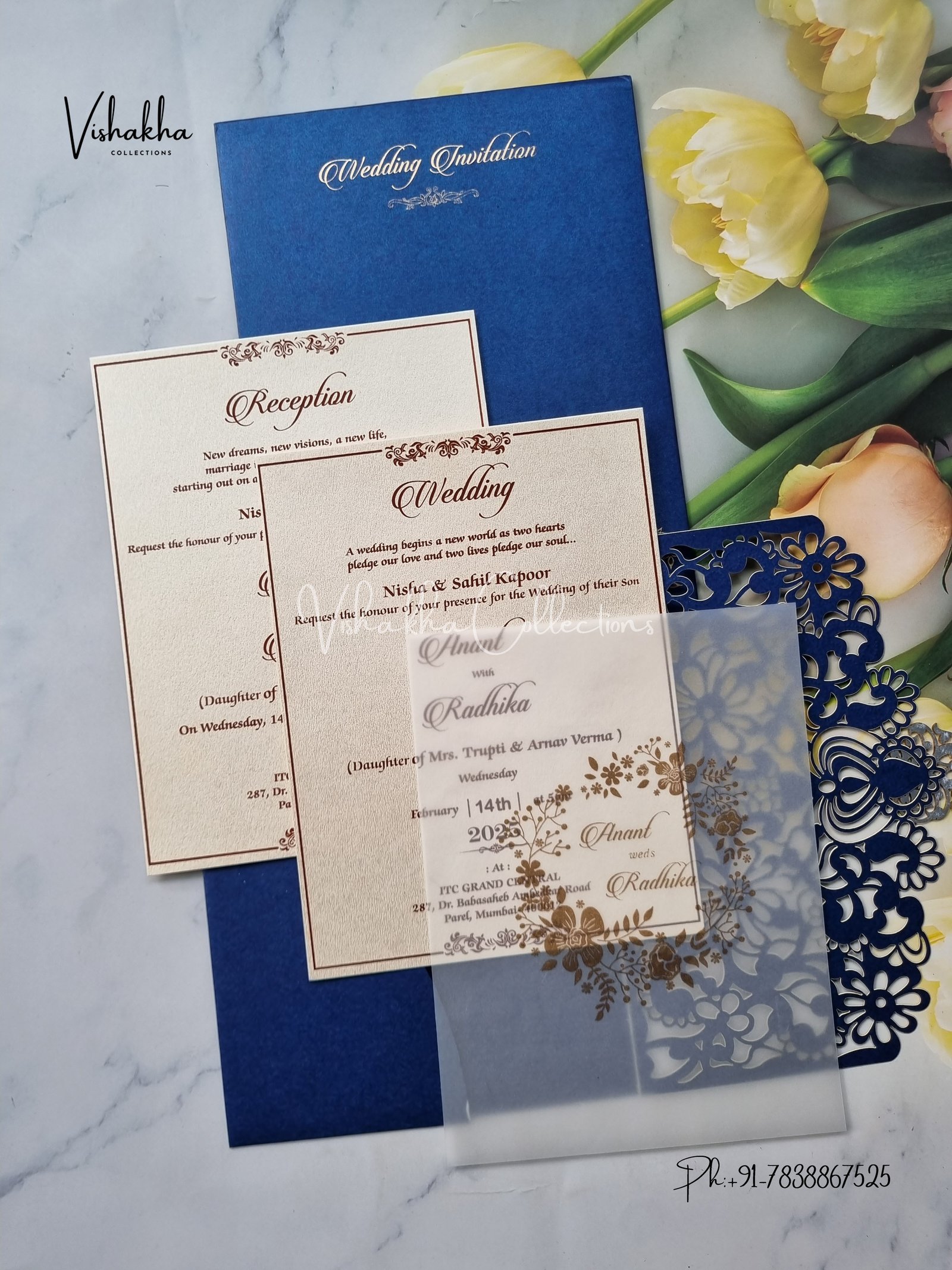 Vishakha Collections presents you beautiful luxury wedding invitation cards with all latest designs and the latest variety. Its just not a wedding invitation card but a beautiful feeling of love and relationship it carries for you. Beautifully printed and packed with a bundle of love. if you like it, dont think again, just go for it.If you are worrying about the quality of the product, send your doubts to us. We are here to help you. If you want in wholesale or bulk, dont forget to contact us.