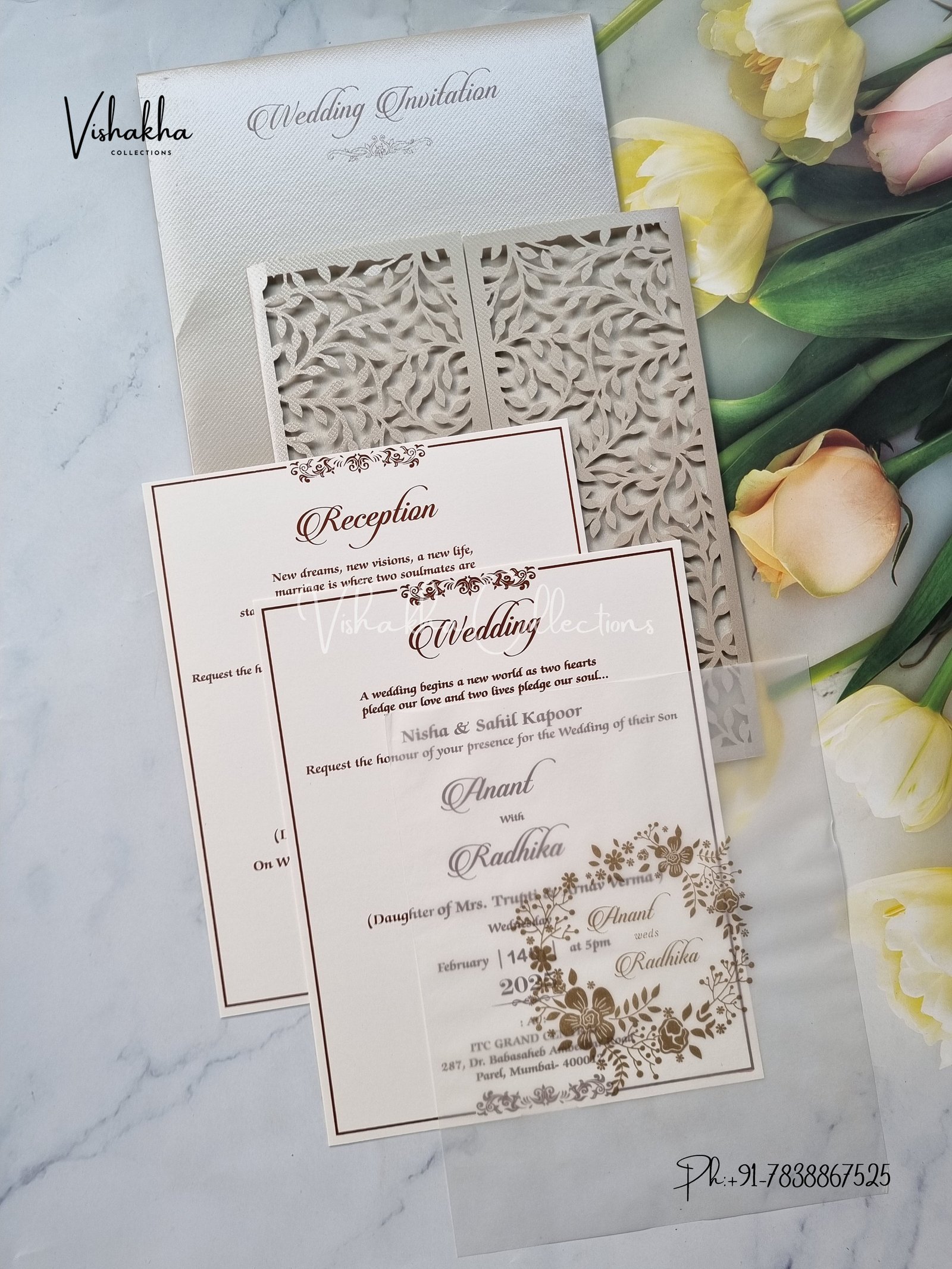 Vishakha Collections presents you beautiful luxury wedding invitation cards with all latest designs and the latest variety. Its just not a wedding invitation card but a beautiful feeling of love and relationship it carries for you. Beautifully printed and packed with a bundle of love. if you like it, dont think again, just go for it.If you are worrying about the quality of the product, send your doubts to us. We are here to help you. If you want in wholesale or bulk, dont forget to contact us.