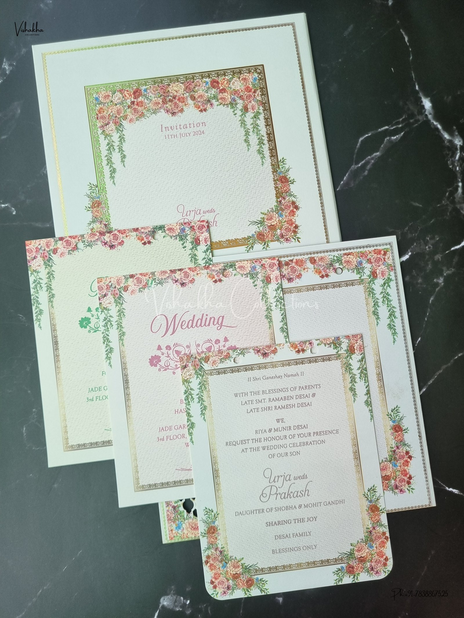 Vishakha Collections presents you beautiful luxury wedding invitation cards with all latest designs and the latest variety. Its just not a wedding invitation card but a beautiful feeling of love and relationship it carries for you. Beautifully printed and packed with a bundle of love. if you like it, dont think again, just go for it.If you are worrying about the quality of the product, send your doubts to us. We are here to help you. If you want in wholesale or bulk, dont forget to contact us.