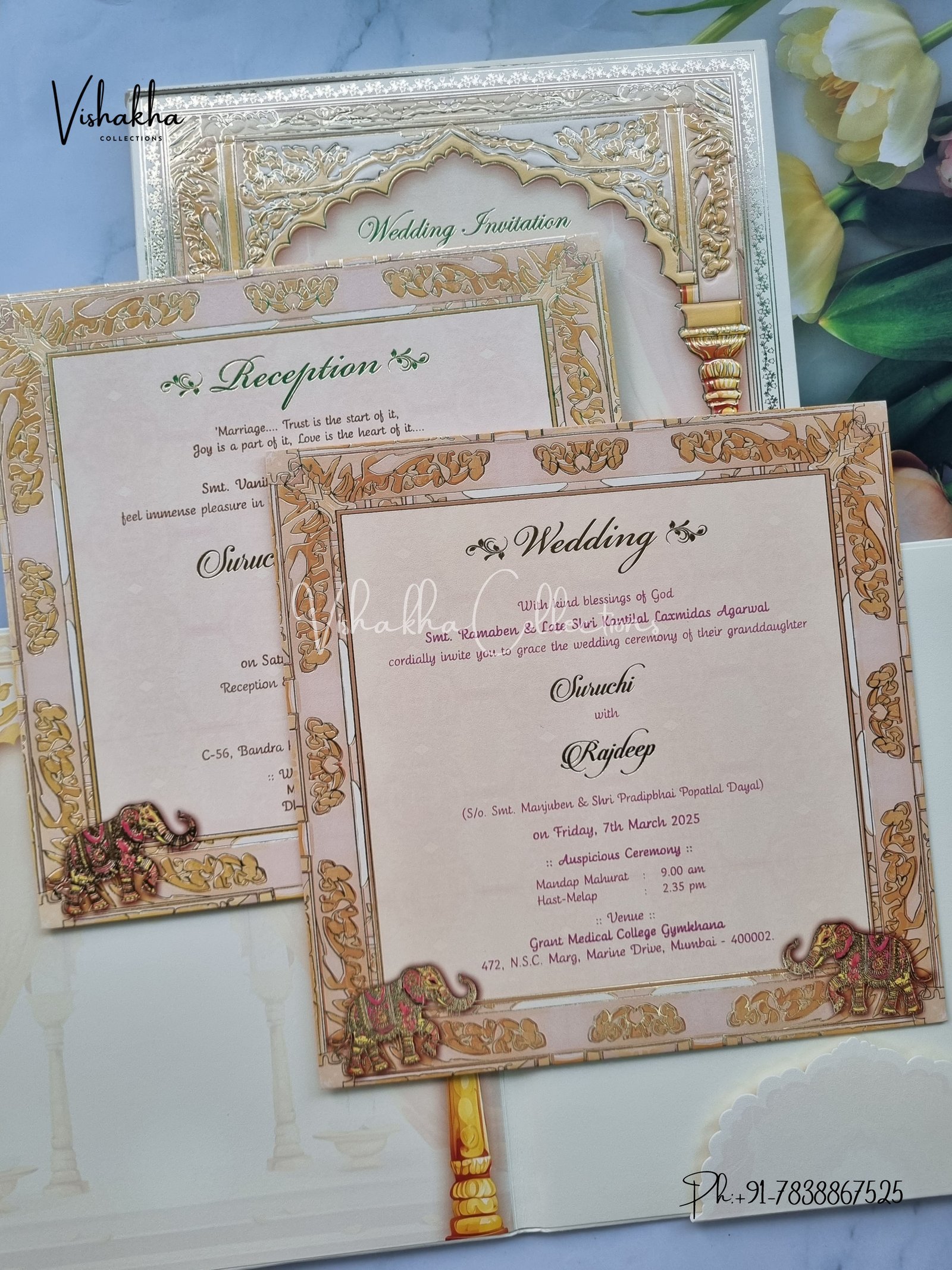 ₹198.00Unique Concept Semi Box Hathi Hindu Padded MDF Board Laser Cut invitation Cards EX-712