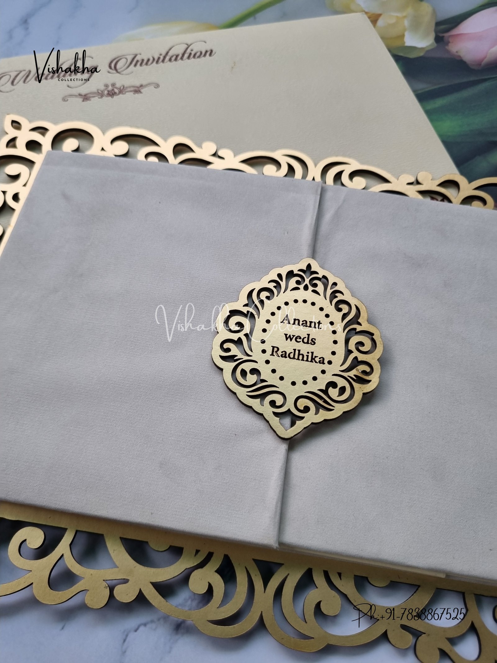 Vishakha Collections presents you beautiful luxury wedding invitation cards with all latest designs and the latest variety. Its just not a wedding invitation card but a beautiful feeling of love and relationship it carries for you. Beautifully printed and packed with a bundle of love. if you like it, dont think again, just go for it.If you are worrying about the quality of the product, send your doubts to us. We are here to help you. If you want in wholesale or bulk, dont forget to contact us.