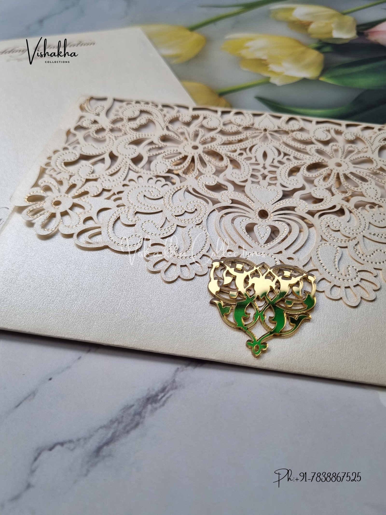 Vishakha Collections presents you beautiful Unique Concept White And Golden Laser Cut Invitation Cards SN-2801 with all latest designs and the latest variety. Its just not a wedding invitation card but a beautiful feeling of love and relationship it carries for you. Beautifully printed and packed with a bundle of love.