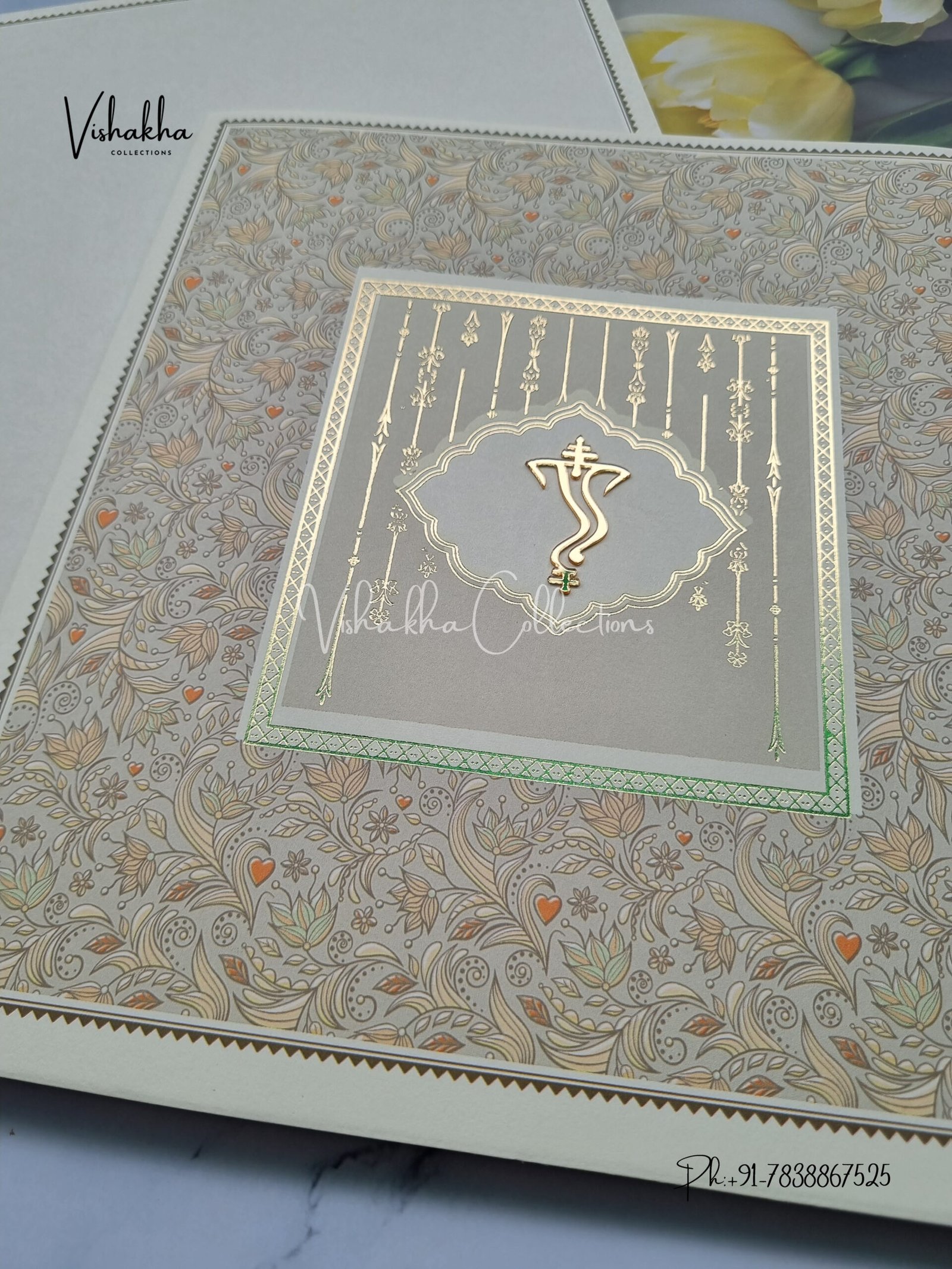 Vishakha Collections presents you beautiful luxury wedding invitation cards with all latest designs and the latest variety. Its just not a wedding invitation card but a beautiful feeling of love and relationship it carries for you. Beautifully printed and packed with a bundle of love. if you like it, dont think again, just go for it.If you are worrying about the quality of the product, send your doubts to us. We are here to help you. If you want in wholesale or bulk, dont forget to contact us.