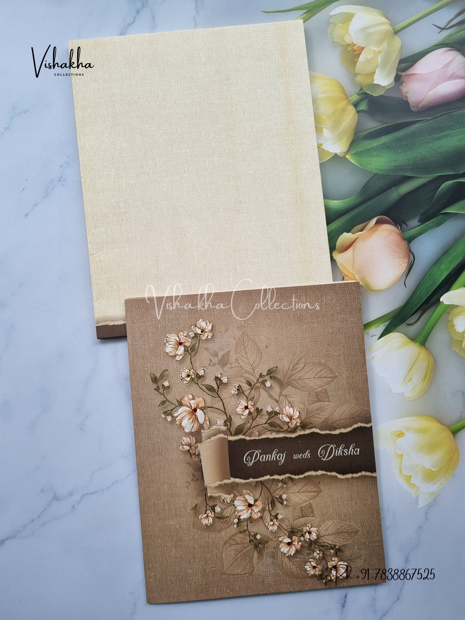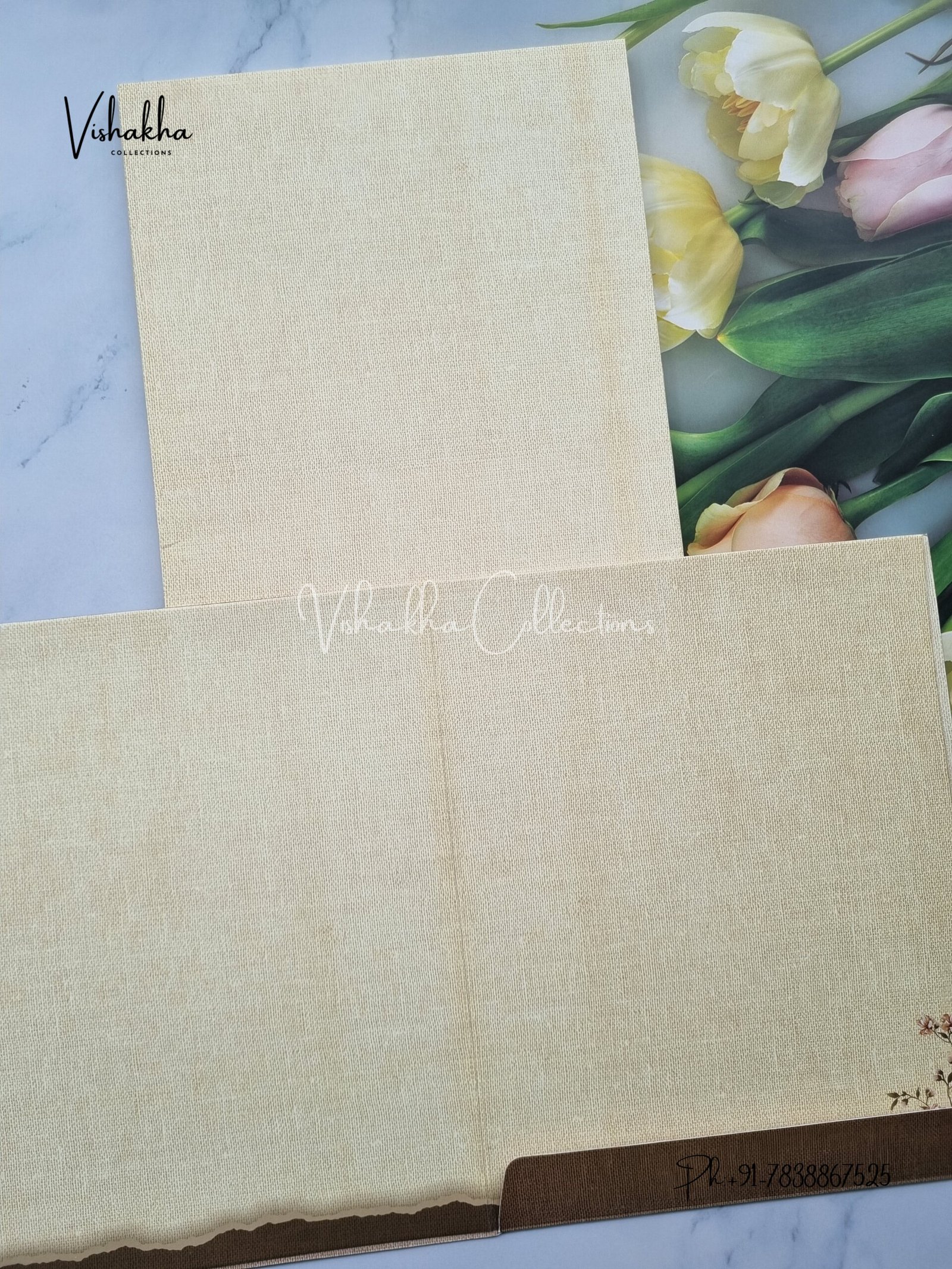 Vishakha Collections presents you beautiful luxury wedding invitation cards with all latest designs and the latest variety. Its just not a wedding invitation card but a beautiful feeling of love and relationship it carries for you. Beautifully printed and packed with a bundle of love. if you like it, dont think again, just go for it.If you are worrying about the quality of the product, send your doubts to us. We are here to help you. If you want in wholesale or bulk, dont forget to contact us.