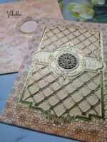 White and gold with Green Pattern shaadi card deisgn