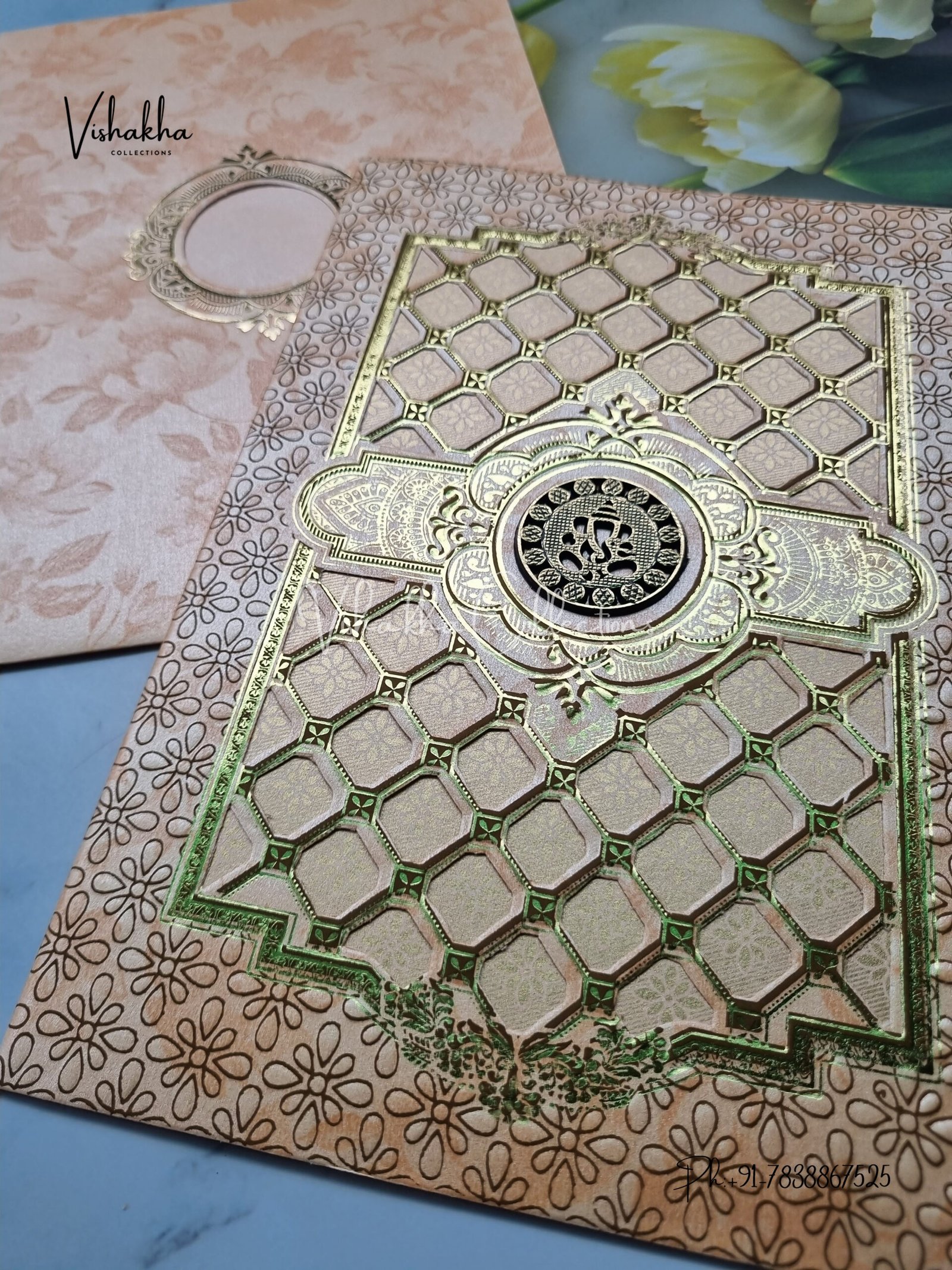 Vishakha Collections presents you beautiful luxury wedding invitation cards with all latest designs and the latest variety. Its just not a wedding invitation card but a beautiful feeling of love and relationship it carries for you. Beautifully printed and packed with a bundle of love. if you like it, dont think again, just go for it.If you are worrying about the quality of the product, send your doubts to us. We are here to help you. If you want in wholesale or bulk, dont forget to contact us.