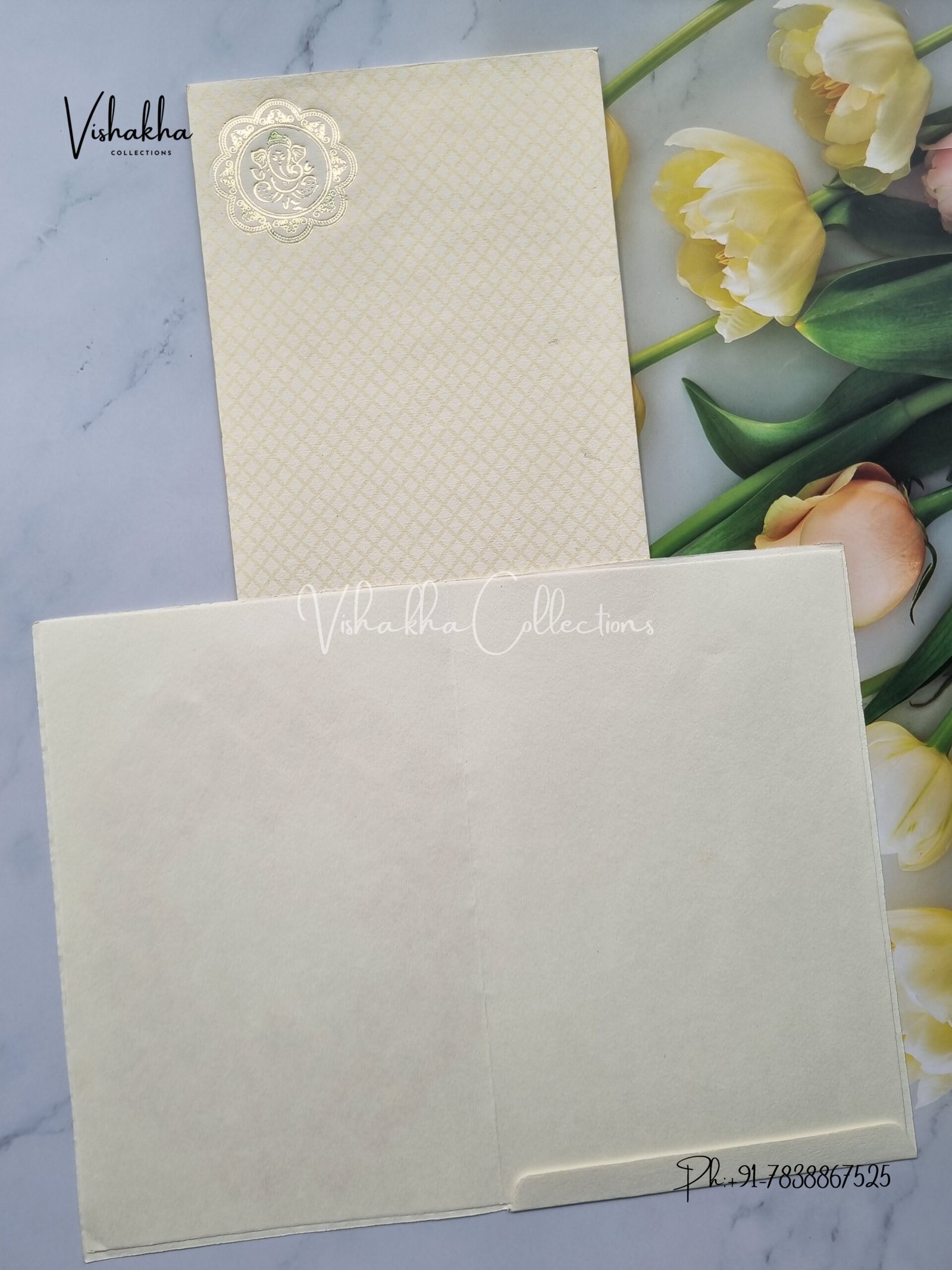 Vishakha Collections presents you beautiful luxury wedding invitation cards with all latest designs and the latest variety. Its just not a wedding invitation card but a beautiful feeling of love and relationship it carries for you. Beautifully printed and packed with a bundle of love. if you like it, dont think again, just go for it.If you are worrying about the quality of the product, send your doubts to us. We are here to help you. If you want in wholesale or bulk, dont forget to contact us.