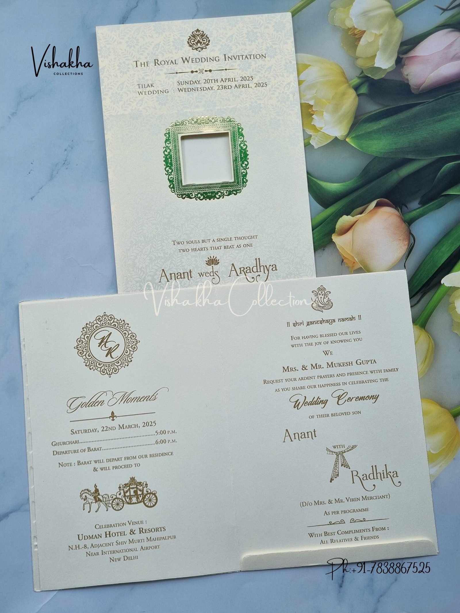 White And golden Color Hindu Wedding invitation Cards – CR-507C
