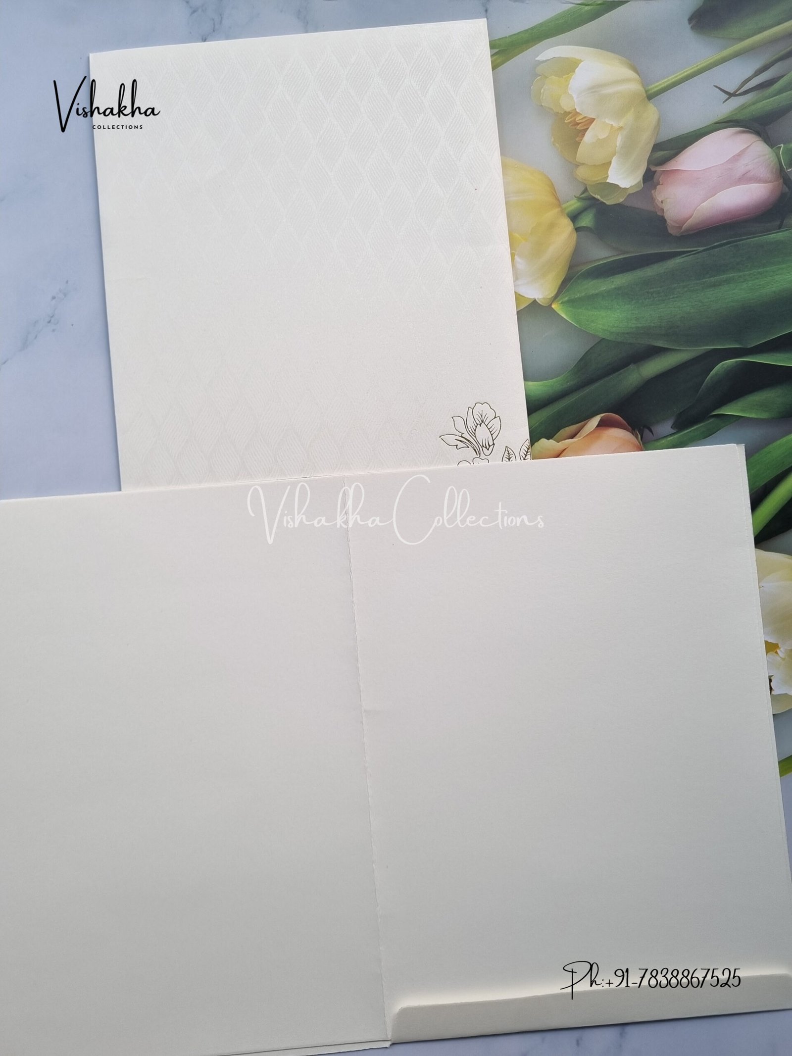 Vishakha Collections presents you beautiful luxury wedding invitation cards with all latest designs and the latest variety. Its just not a wedding invitation card but a beautiful feeling of love and relationship it carries for you. Beautifully printed and packed with a bundle of love. if you like it, dont think again, just go for it.If you are worrying about the quality of the product, send your doubts to us. We are here to help you. If you want in wholesale or bulk, dont forget to contact us.