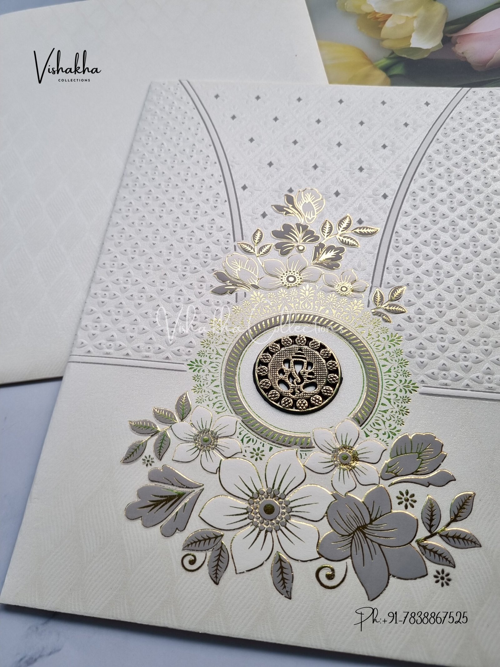 ₹38.00White and Grey Flower Design with Gold highlighting invitation card