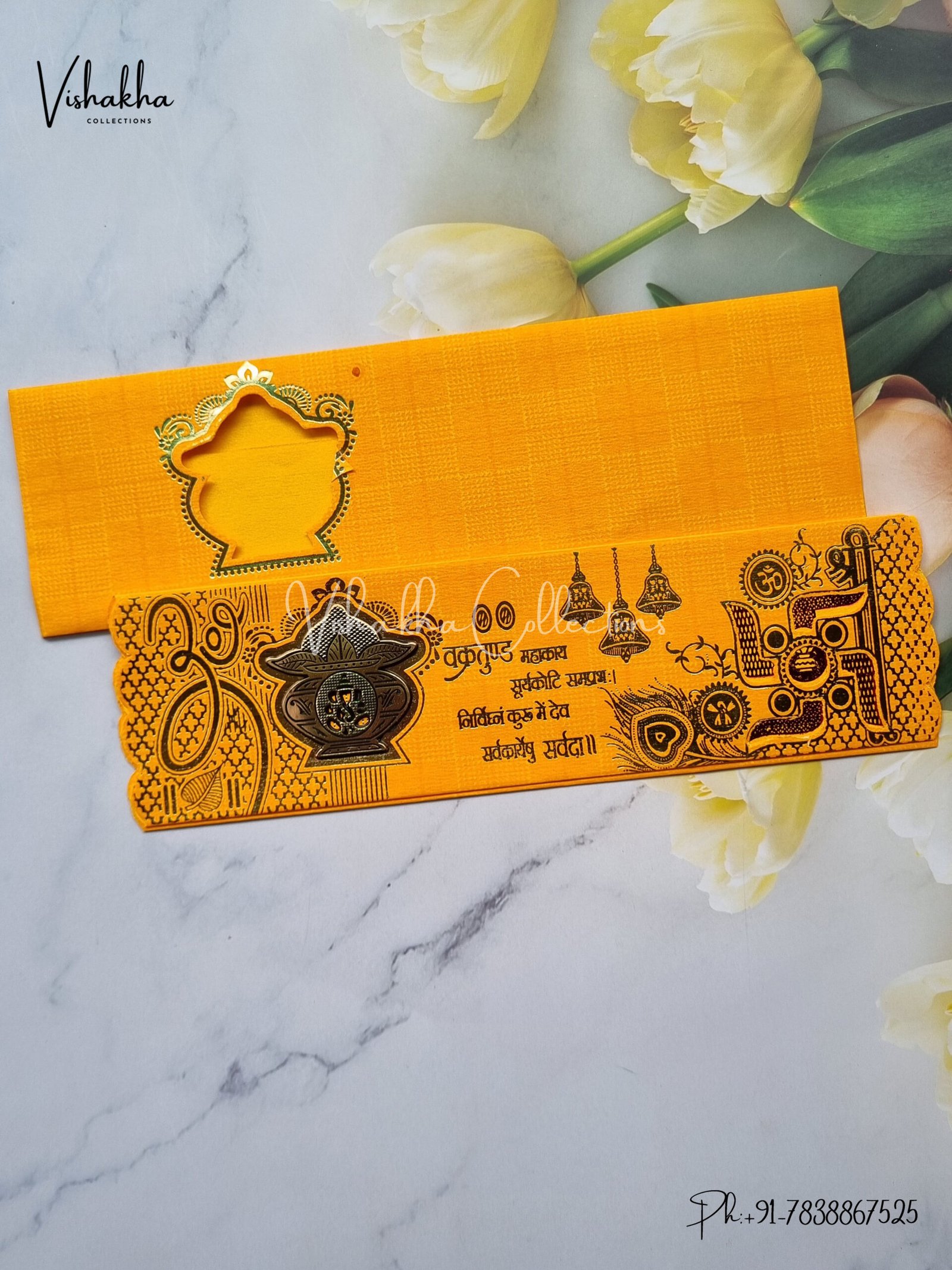 ₹6.60Yellow Piano style paper Scroll with Kalash Ganesh hindu marriage card design