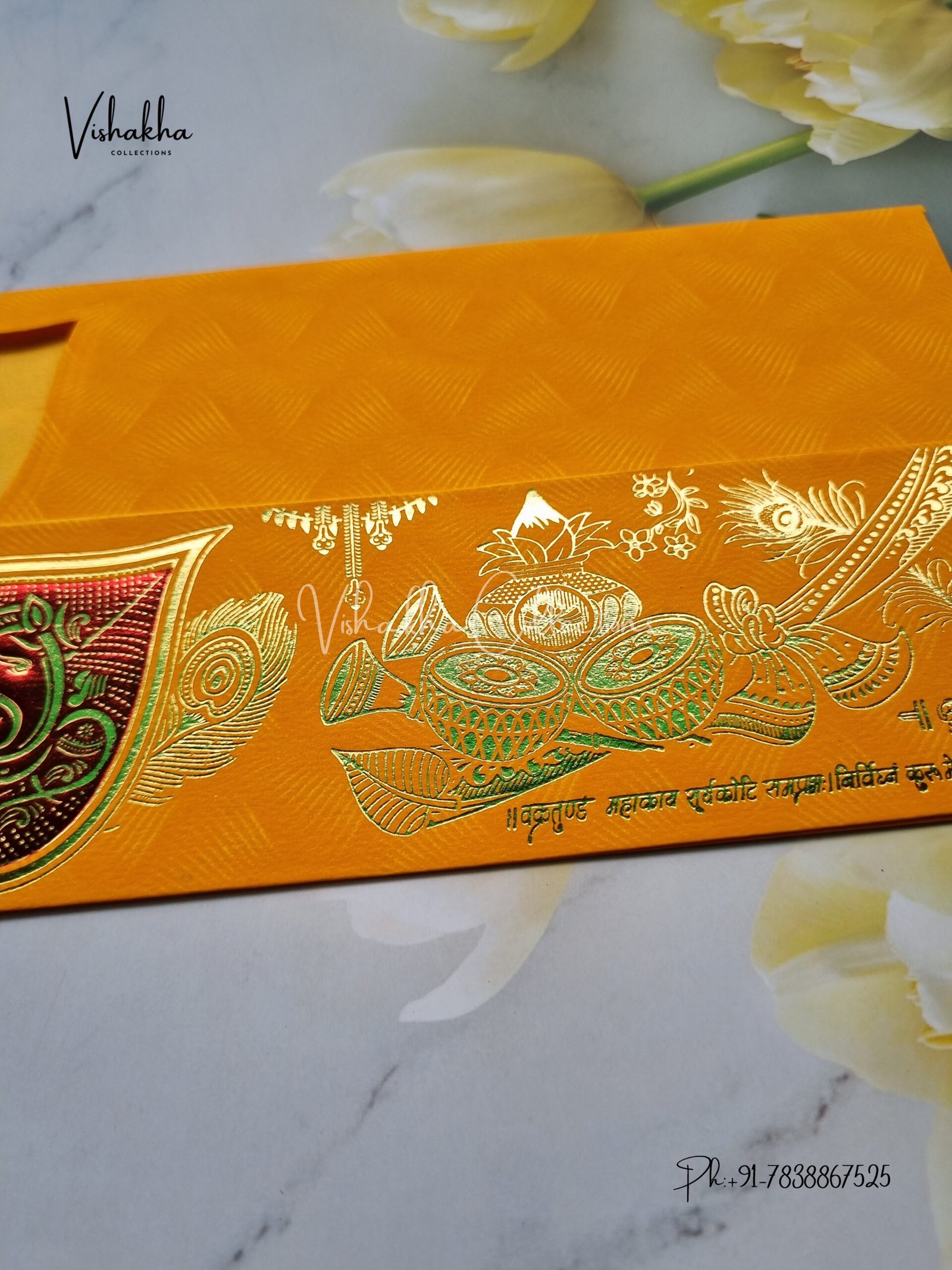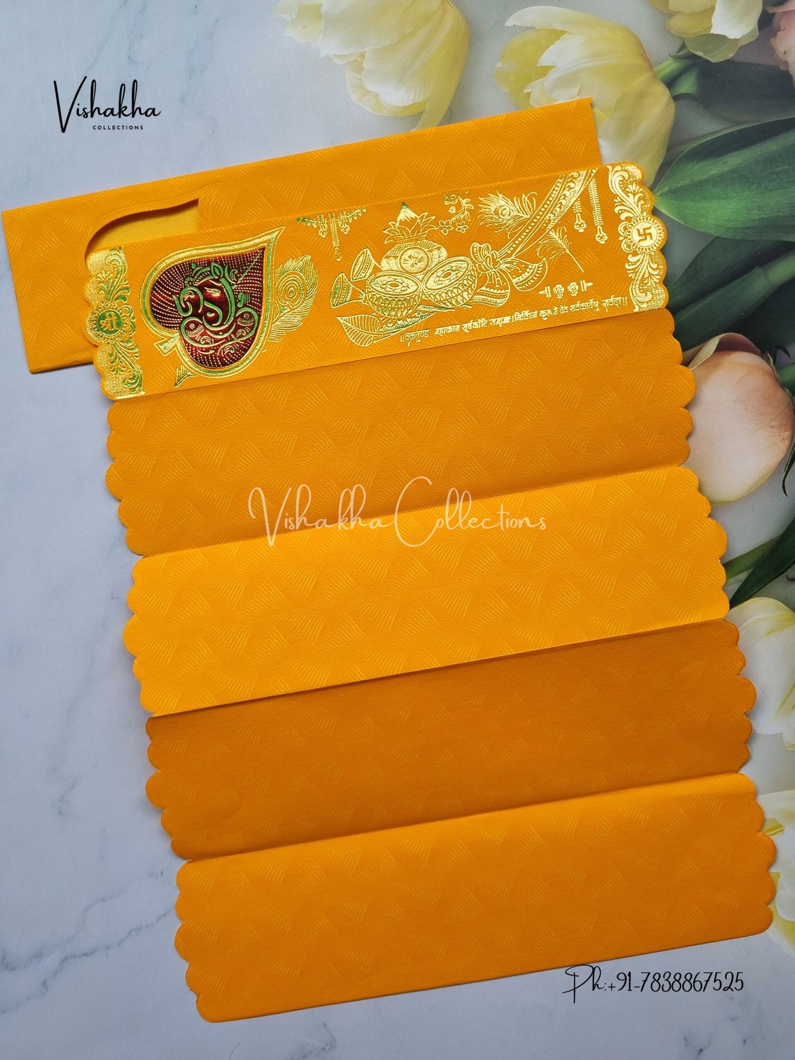 ₹4.60Yellow Piano style paper Scroll with Paan Ganpati foldable wedding invite